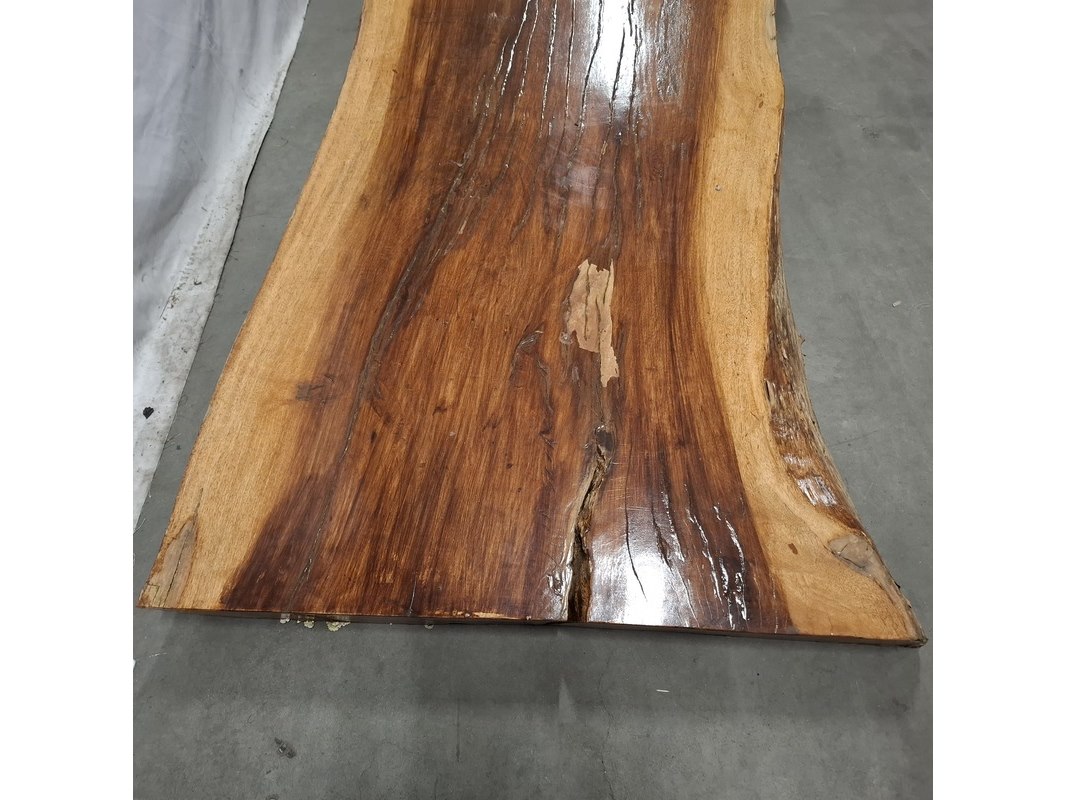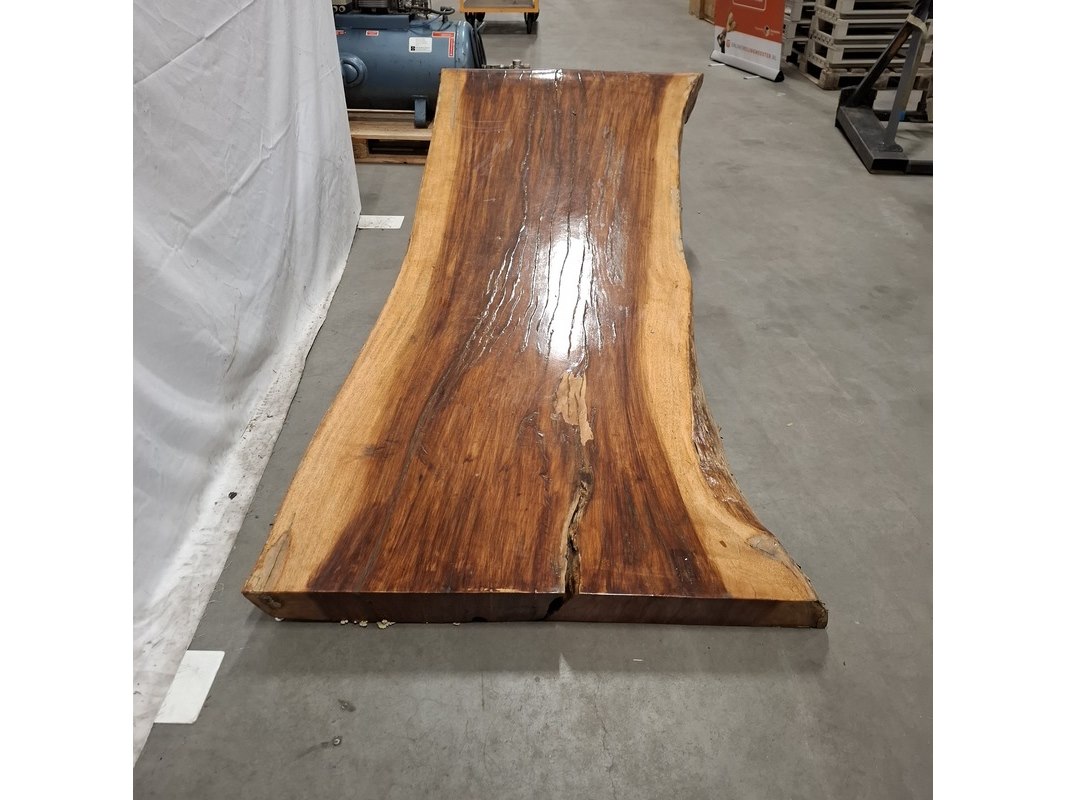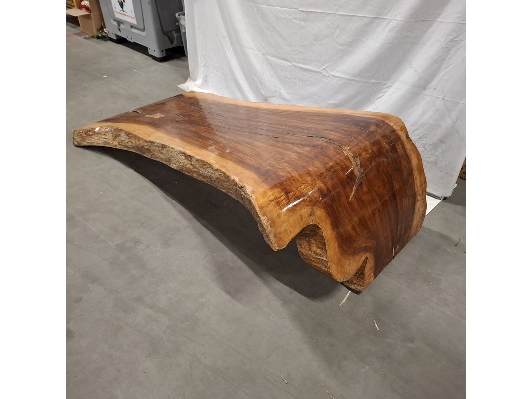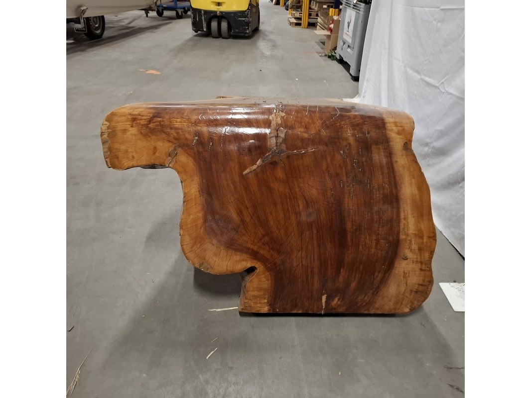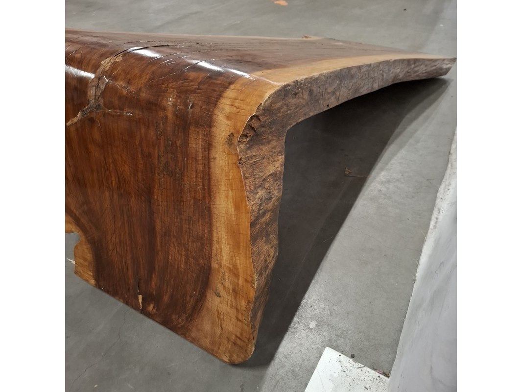 Product: L shape tafel walnoot stam Kleur: Bruin Materiaal: Walnoot Afmeting: 220x60x70-80 cm BouwJaar: 2026 Conditie: Nieuw
