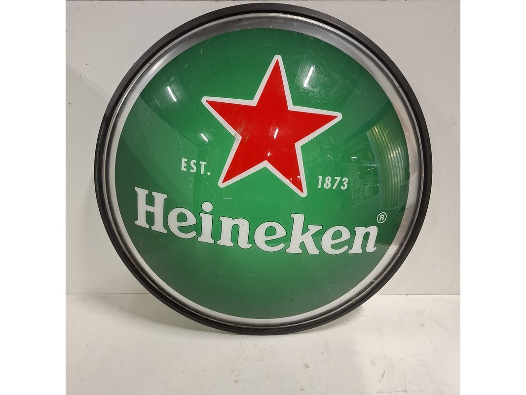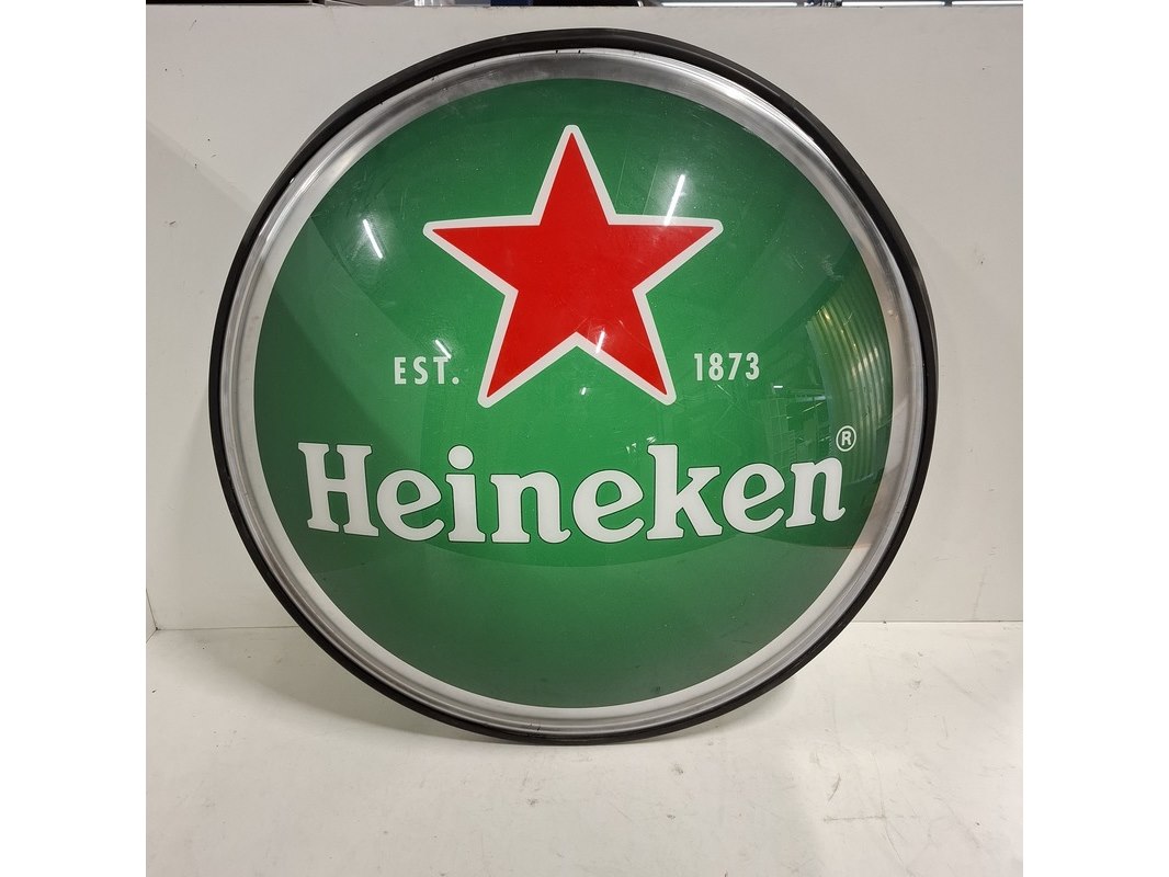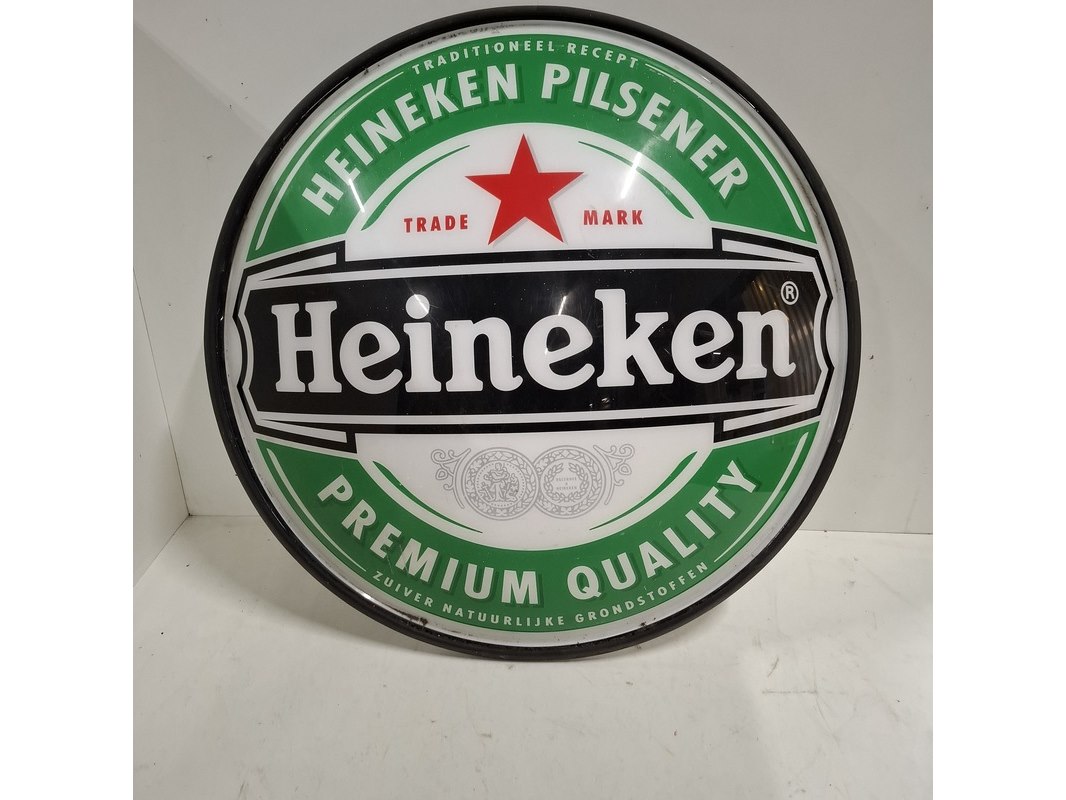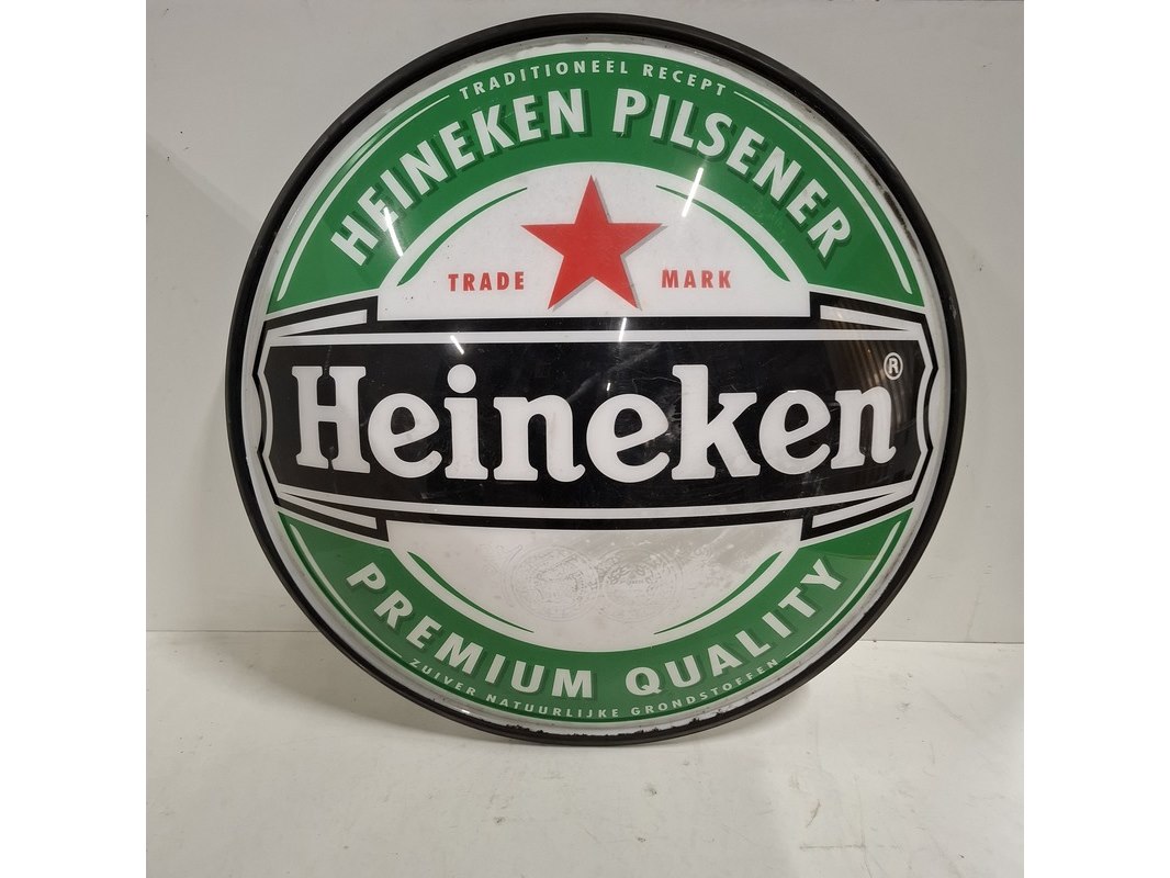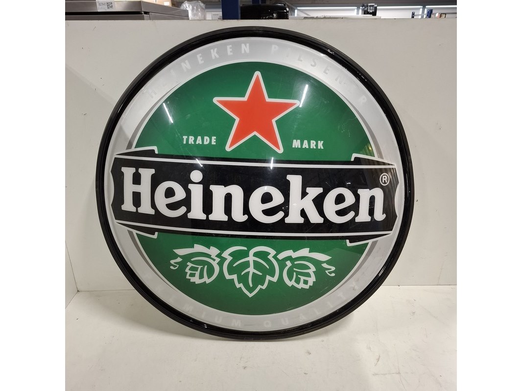 Merk: Heineken Product: Uithangbord Afmeting: Diameter ca. 78cm Conditie: Gebruikt