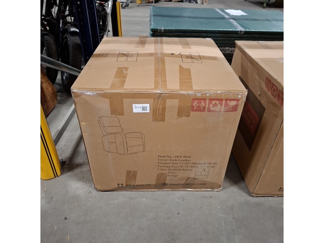 Product: Elektrisch verstelbare fauteuil Kleur: Grey Materiaal: Pu leder BouwJaar: 2026 Conditie: Nieuw Specificaties: Elektrisch verstelbare rug en voetenbank, met usb poort en voeding.