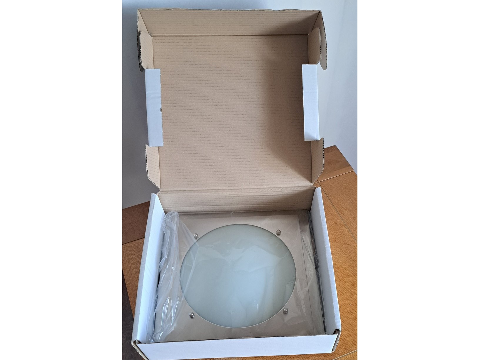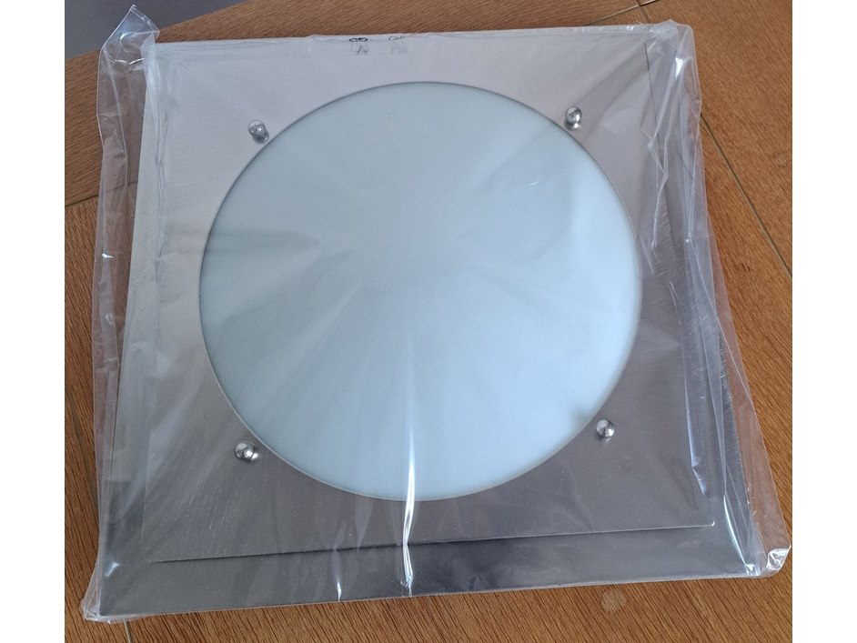 Product: Plafonnière Kleur: Grijs / Chroom Materiaal: Metaal Afmeting: 32x32 cm Conditie: Nieuw Specificaties: Mooie zware kwaliteit plafonnière. RVS met glas 1x fitting E27 afmeting: 32x32 cm