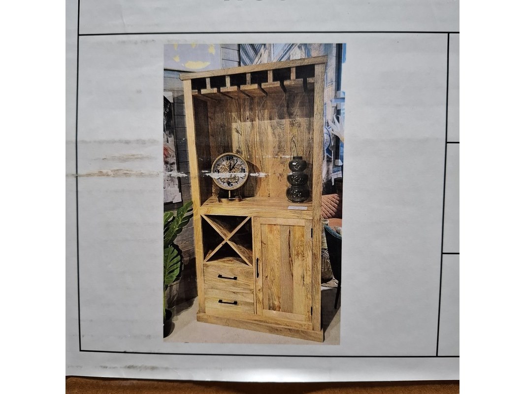 Product: Mangohout Bar kast Materiaal: Mangohout Afmeting: 90x40x170 BouwJaar: 2025 Conditie: Nieuw