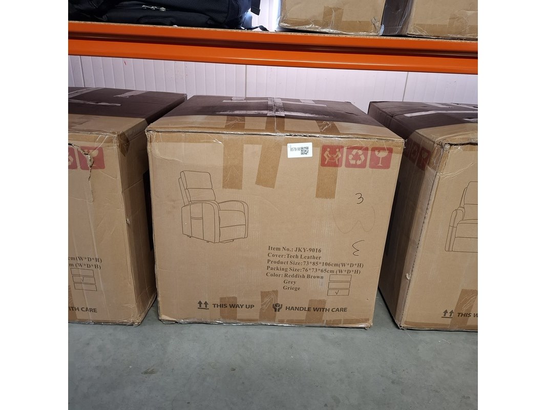 Product: Elektrische fauteuil Kleur: Griege Materiaal: Pu leder BouwJaar: 2025 Conditie: Nieuw Specificaties: Incl. oplader usb punt en incl. voeding. Verstelbare voet- en rugleuning