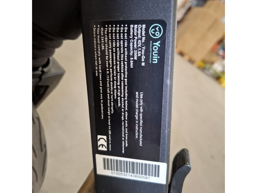 Merk: Youin Product: Elektrische step Conditie: Gebruikt Specificaties: Output: 42V, 1.5A Motor Power: 250W Battery capacity: 5.0AH