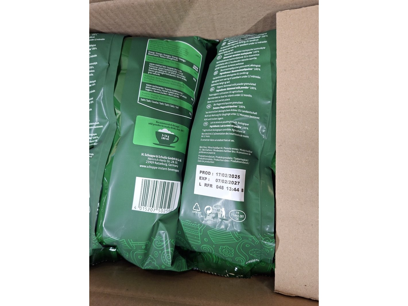 Ca. 74x a 500 gram melkpoeder t.b.v. koffieautomaat. , scho, skimmed milk powder, topping no. 210