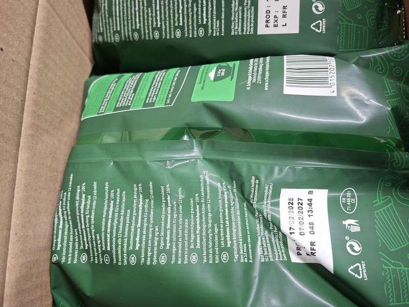 Merk: Scho Product: Melkpoeder t.b.v. koffieautomaat. Afmeting: 74 stuks a 500 gram. Conditie: Nieuw Specificaties: Productie datum 17-02-2025, t.h.t. 07-02-2027 Melkpoeder voor koffieautomaat bedrijfsmatig.