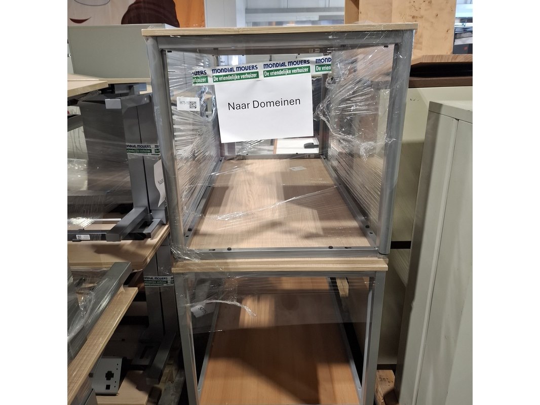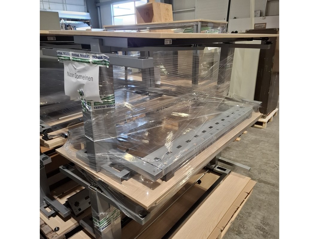 Product: Bureau en 6x tafel Afmeting: o.a. lxb ca. 180x80 cm Conditie: gebruikt