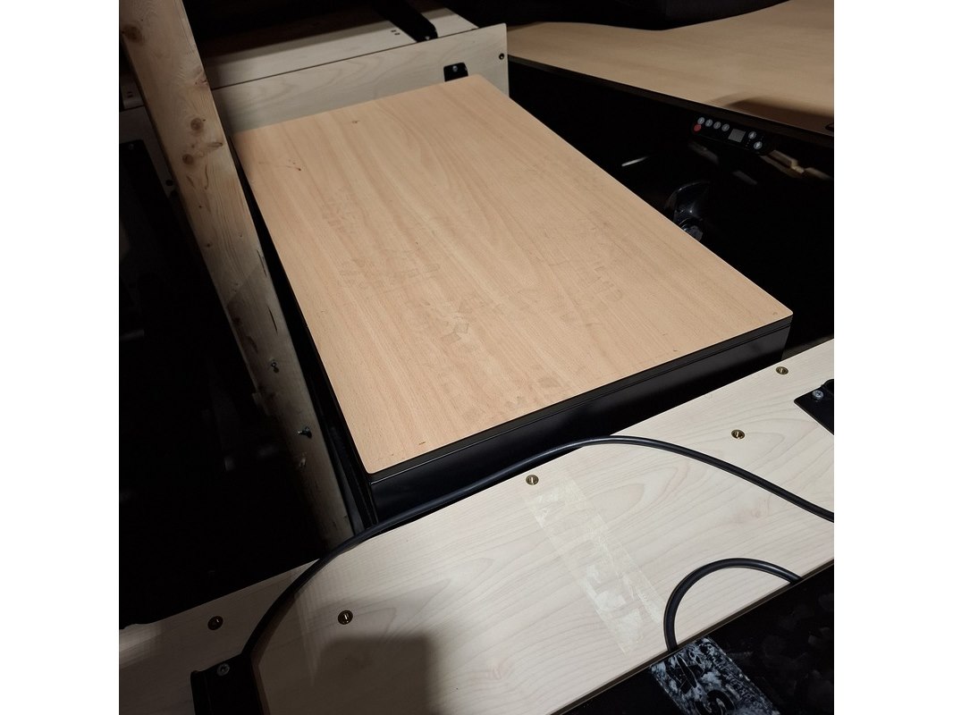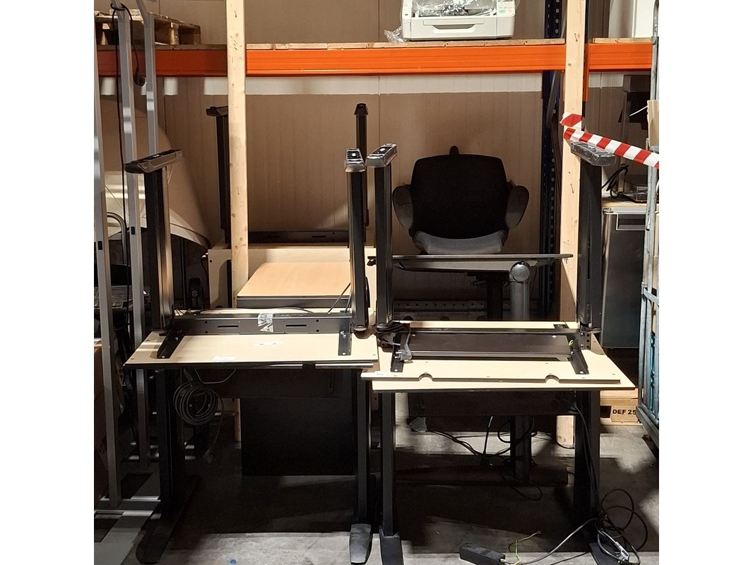 8x tafel, 1x kast en 1x bureaustoel