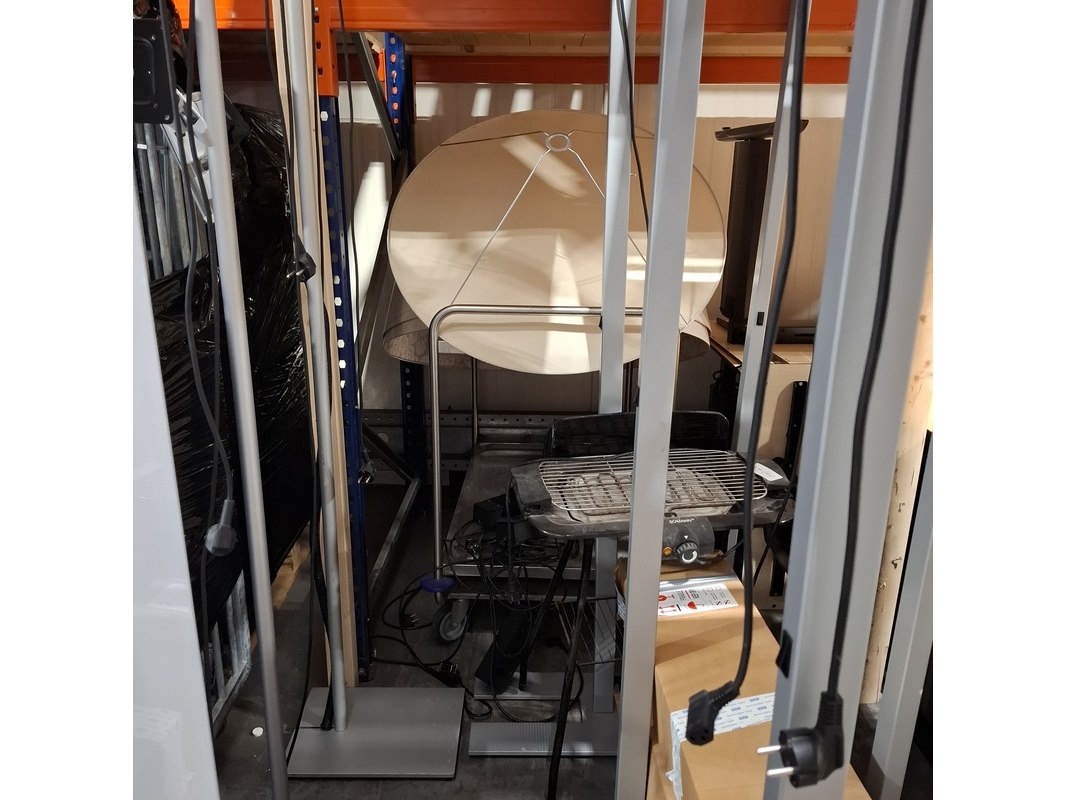 Product: Diverse bedrijfsinventaris Conditie: gebruikt Specificaties: Bestaande uit o.a. staande lampen, barbecue, screens, lampenkap, serveerwagen, etc
