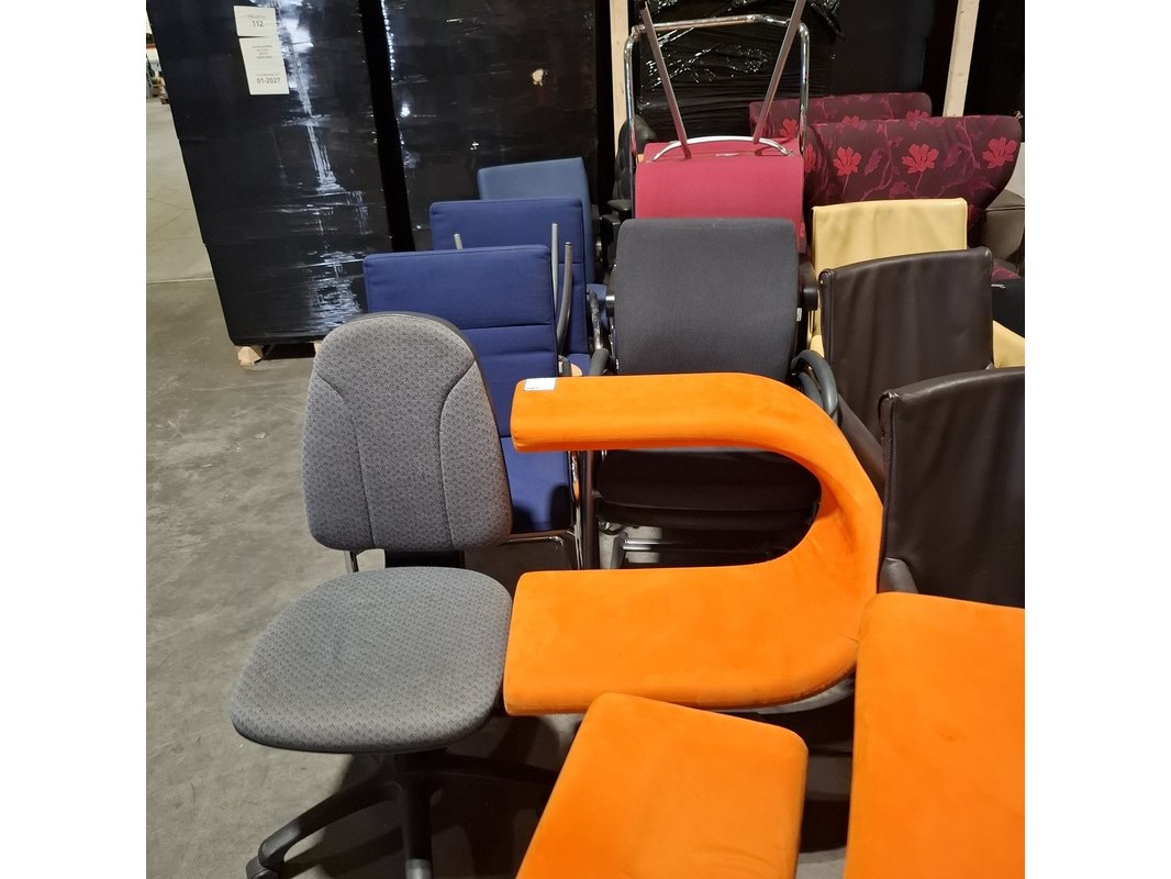 Product: Partij diverse stoelen en fauteuils Conditie: gebruikt Specificaties: Diverse soorten en maten. Beschadigd.