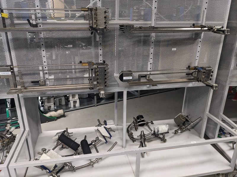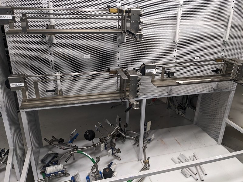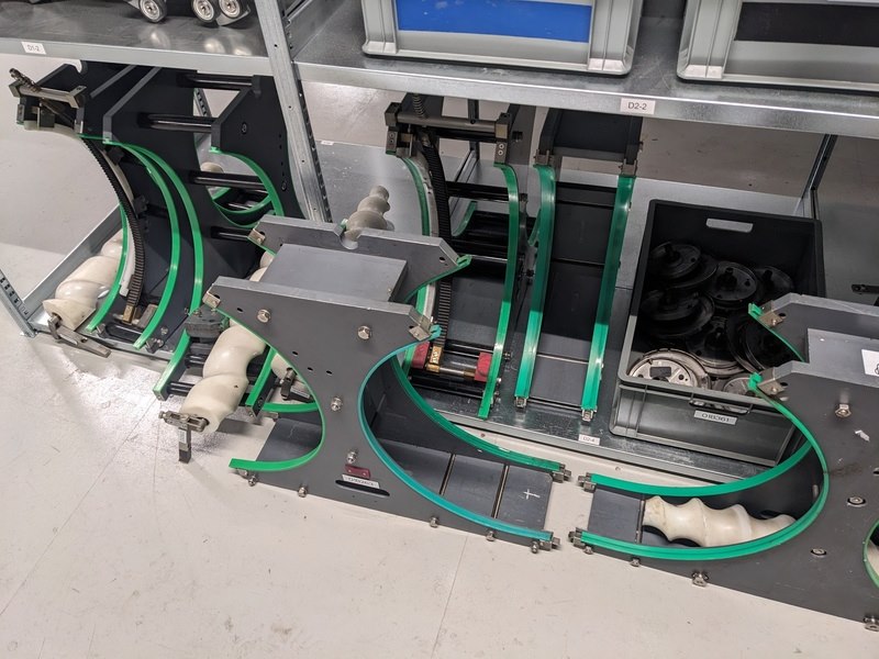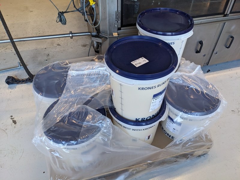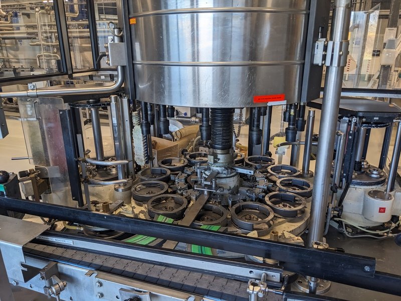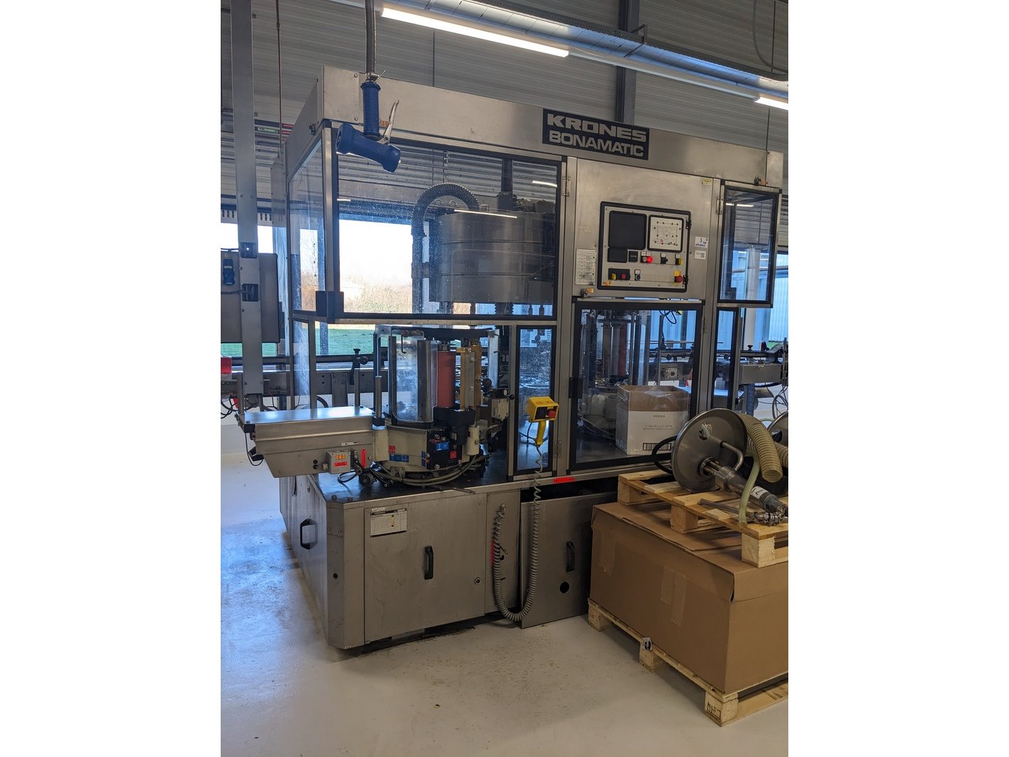 Merk: Krones Product: Natlijm etiketeer machine Materiaal: RVS Afmeting: L280cm x B210cm x H240 BouwJaar: 1991 Conditie: Gebruikt Specificaties: -Nat kleef etiketteermachine met 2 stations (voor, achter en hals etiketten), max capaciteit circa 12000 bottles/hour, 12 flessentafels, centrale besturing, gecentreerde en ongecentreerde flessen -Exclusief externe flessenbaan aandrijving, inclusief 2 lijmpompen en voorraad lijmemmers, inclusief 9 verschillende formaatdeel sets -Inclusief reserve/slijtdelen bestaande uit: 11 etiketten magazijnen, divers aandrukrollen en borstels, 12 lijmpalletten, 11 grijperpakketten, divers documentatie, in en uitvoersterren, tussenstukken, 4 setten tafels, 4 invoer wormen