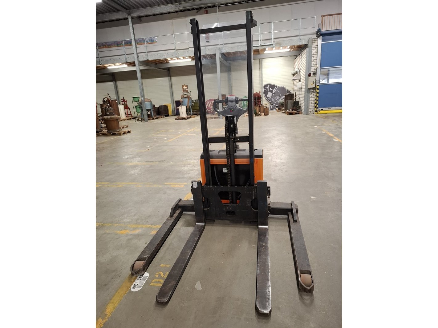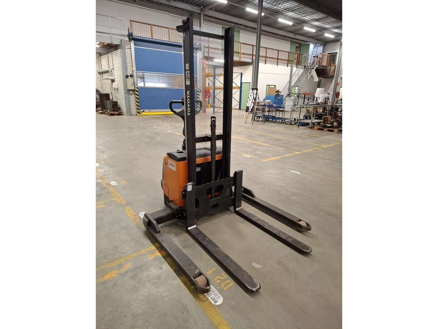Merk: Toyota Product: Elektrische hydraulische stapelaar Specificaties: afgelezen urenstand 276, max 1200kg, masthoogte ca 210cm, max hefhoogte ca 170cm, lepellengte ca 100cm, verstelbaar vorkenbord, 24V, incl. lader