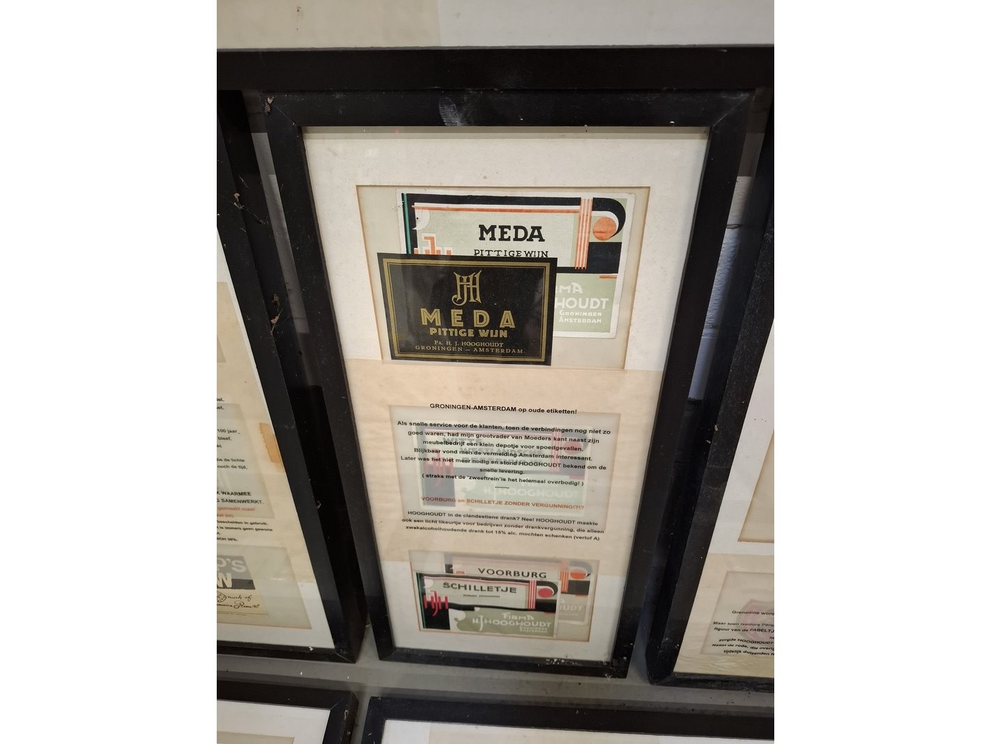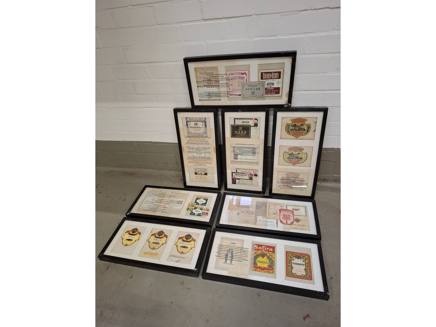 Product: 12x nostalgische afbeelding in lijst Afmeting: 4x afm. ca 33x90cm en 8x afm. ca 52x25cm Specificaties: Betreft infoborden voor excursies welke gehouden werden in het pand van Hooghoudt