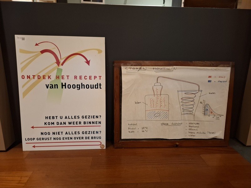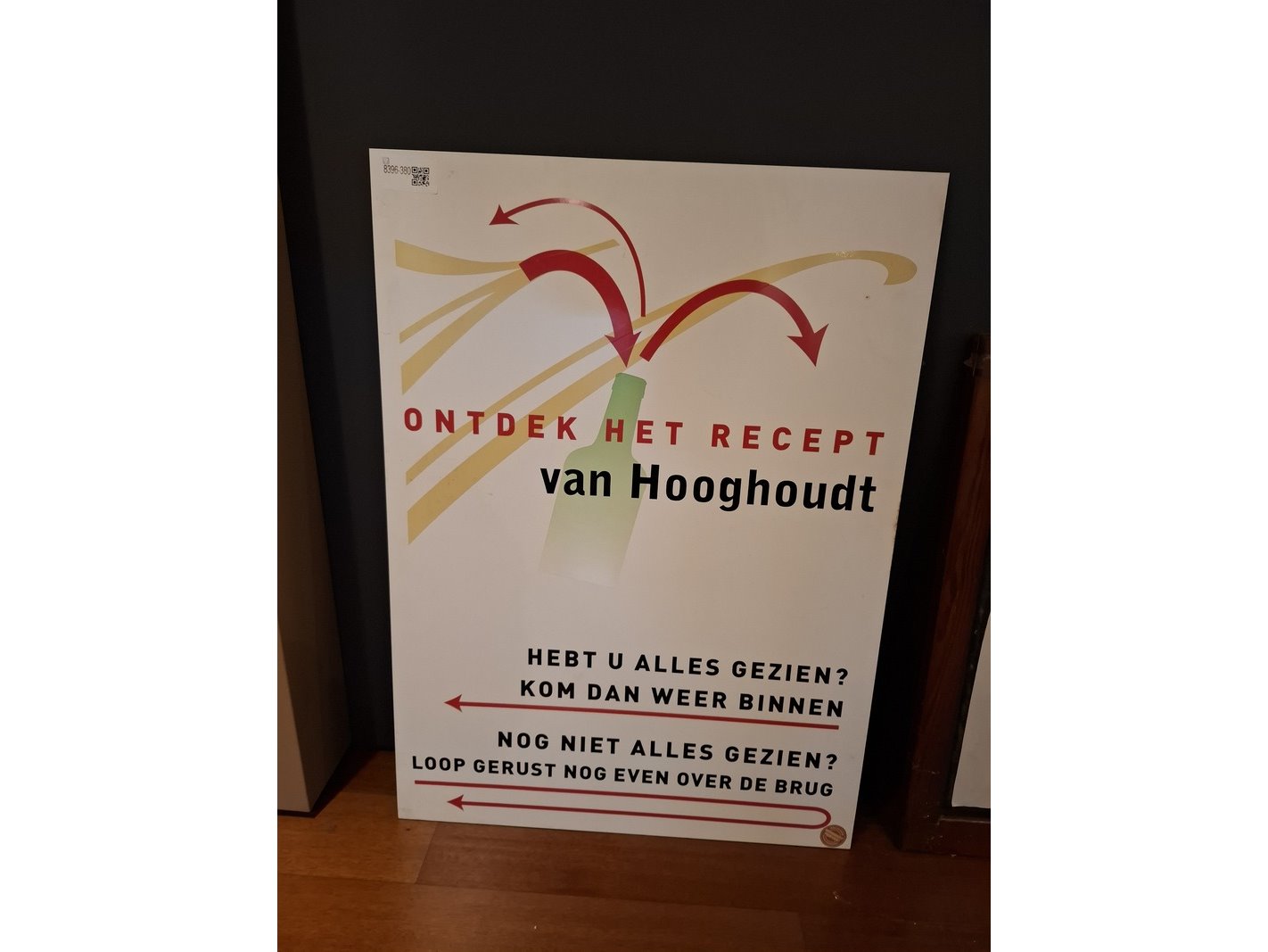 Product: Nostalgisch schoolbord en infobord 'Ontdek het recept van Hooghoudt' Specificaties: Nostalgisch schoolbord met het stookproces van moutwijn, afm ca 107x77cm