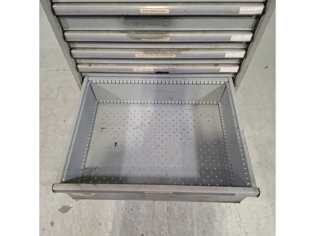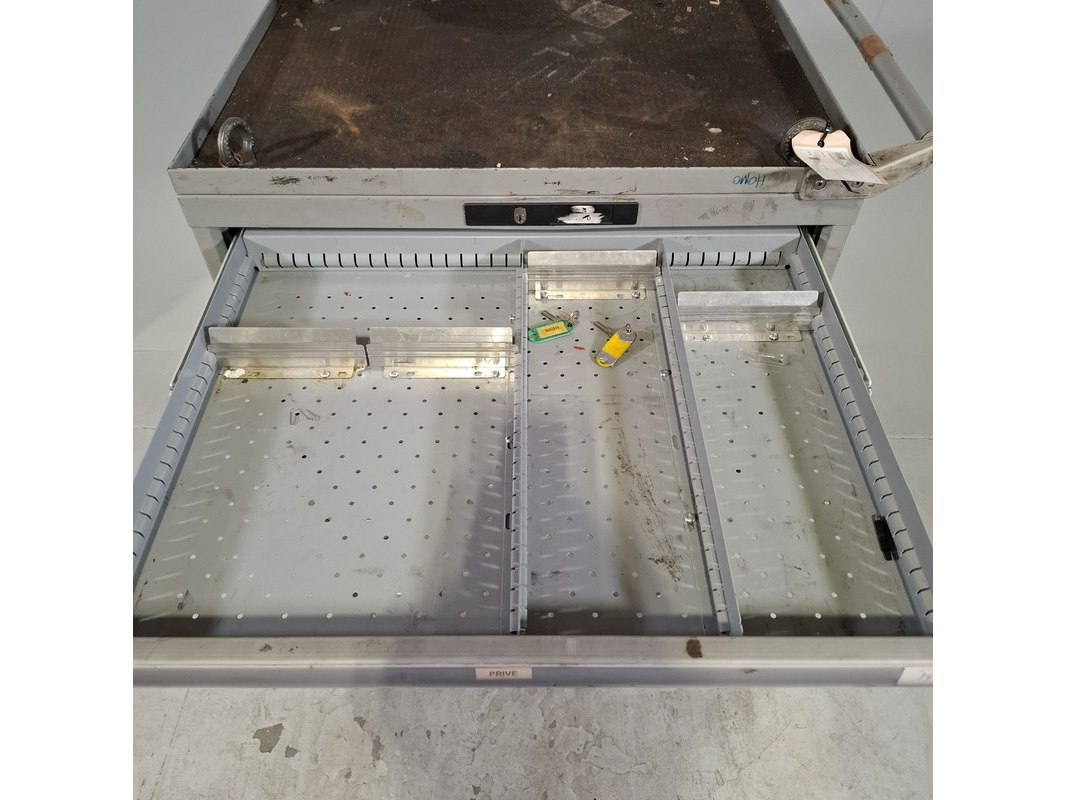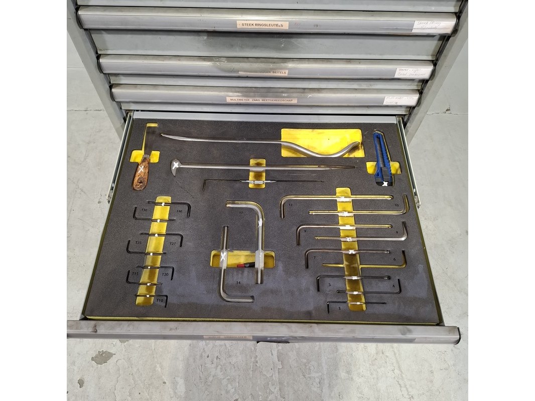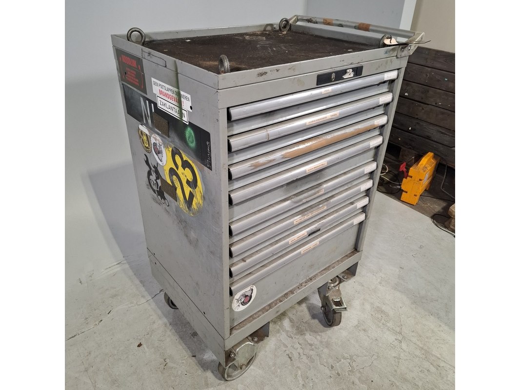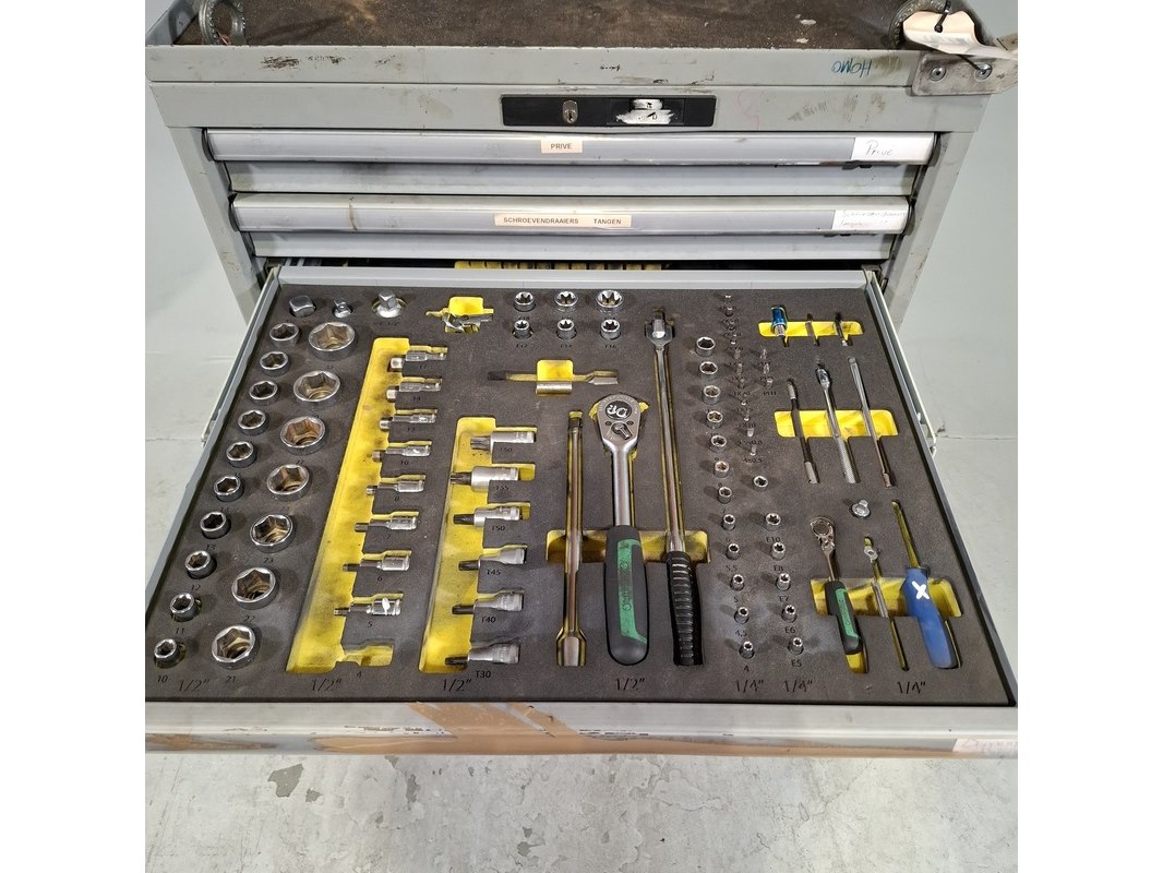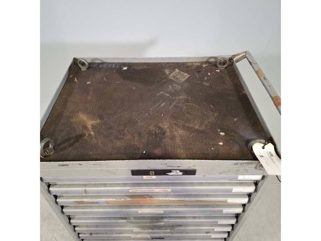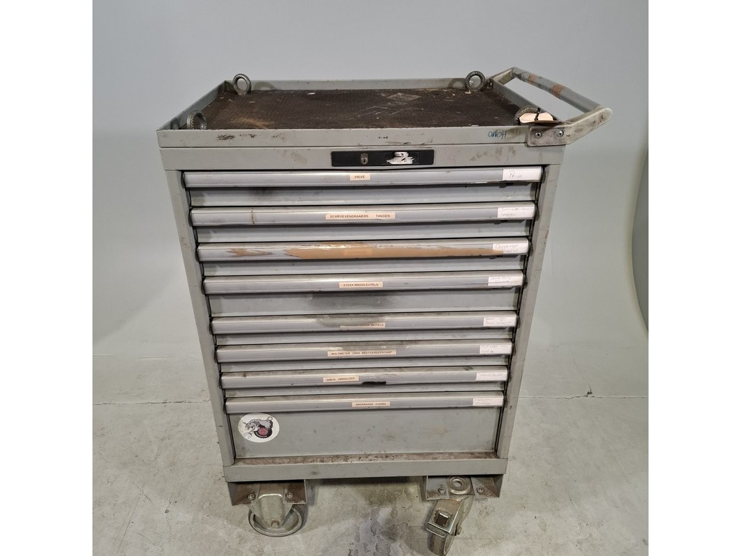 Merk: Lista Product: Gevulde gereedschapswagen Afmeting: HxBxD ca. 118x72x59 cm. Conditie: gebruikt Specificaties: Inhoud bestaande uit: Schroevendraaiers, steeksleutels, doppen en etc. De kar heeft diverse beschadigingen en gebreken. Technische staat en compleetheid onbekend.