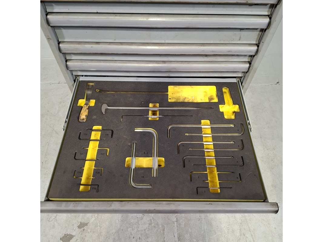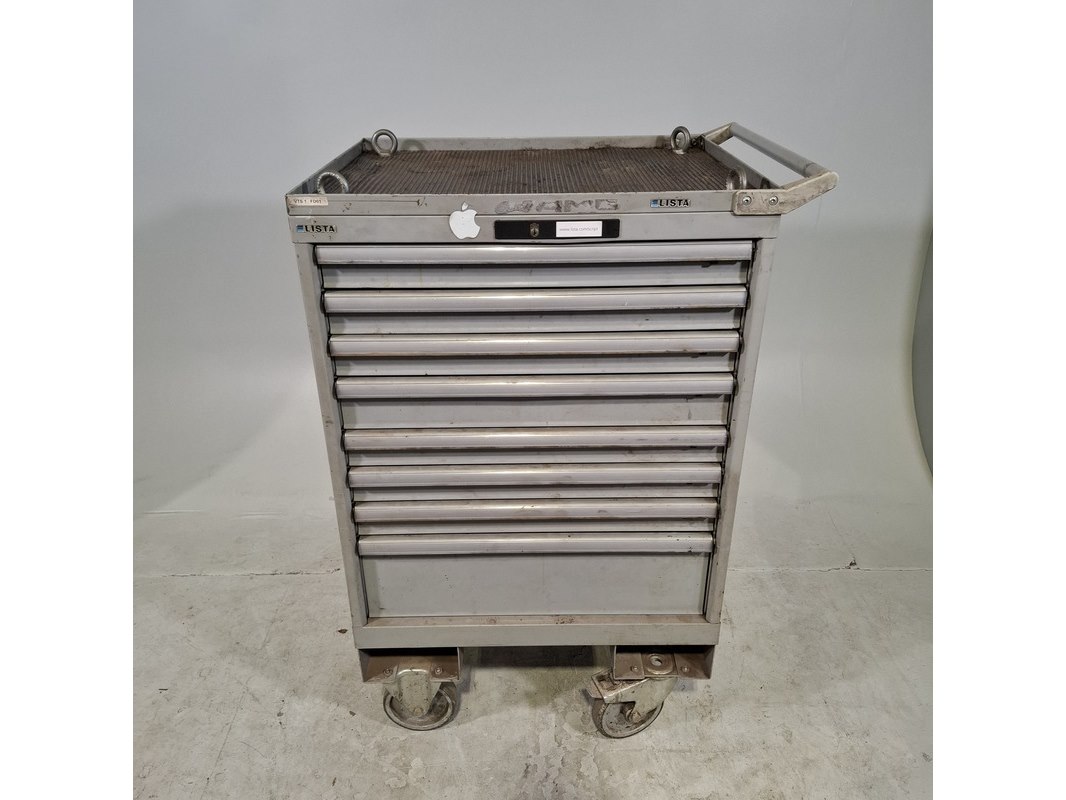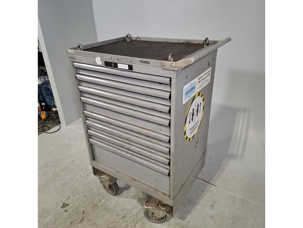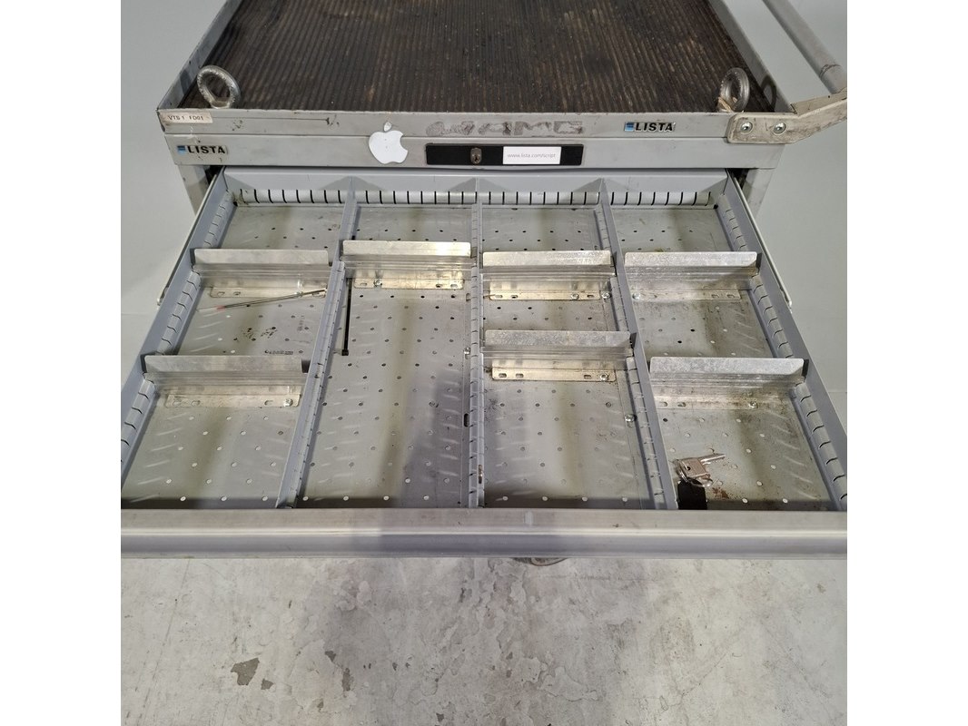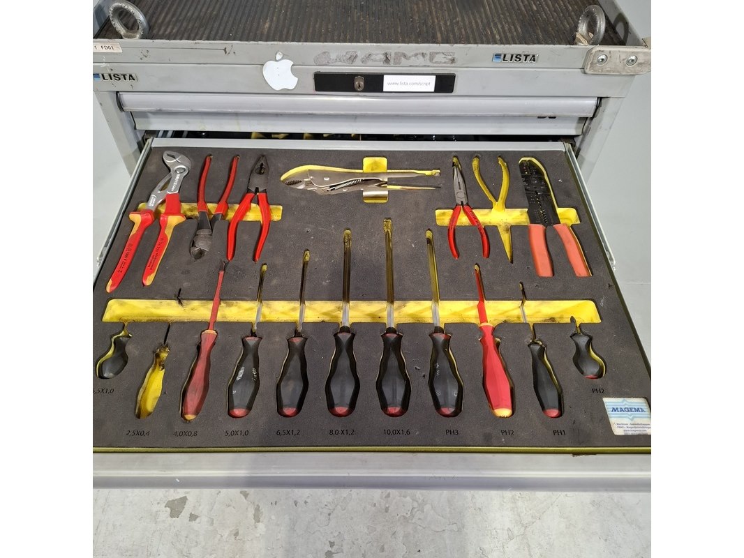 Merk: Lista Product: Gevulde gereedschapswagen Afmeting: HxBxD ca. 118x72x59 cm. Conditie: gebruikt Specificaties: Inhoud bestaande uit: Schroevendraaiers, steeksleutels, doppen en etc. De kar heeft diverse beschadigingen en gebreken. Technische staat en compleetheid onbekend.