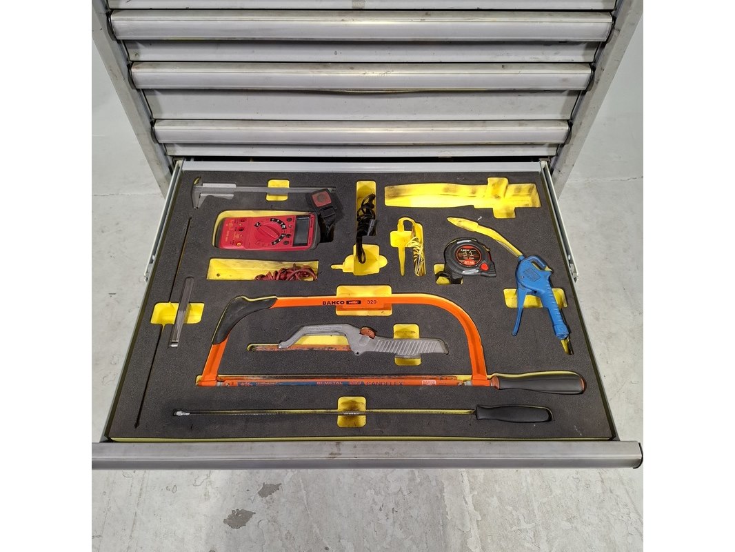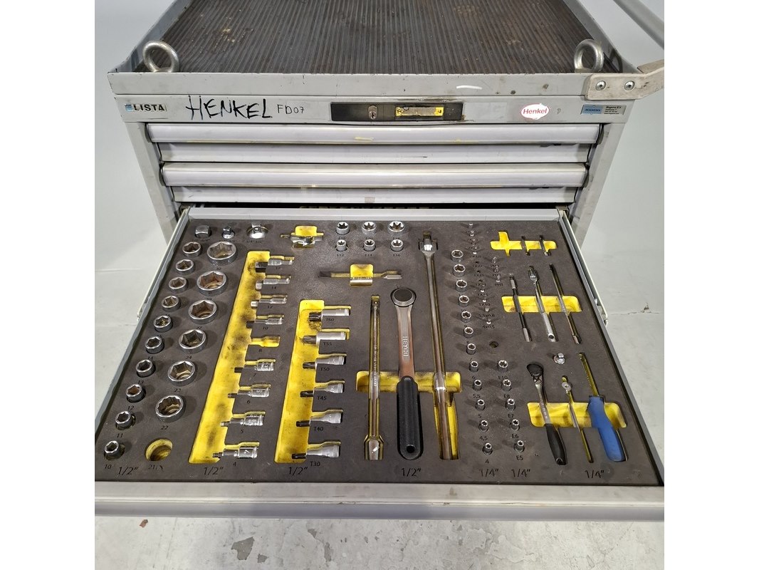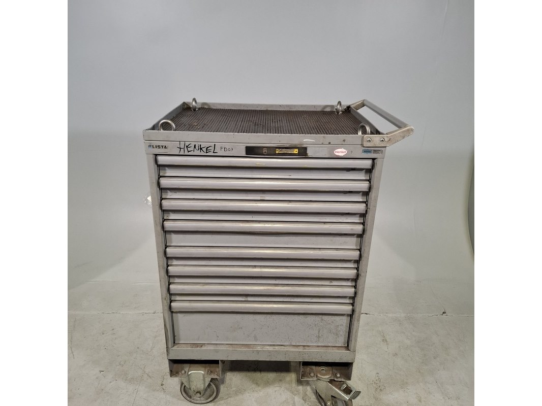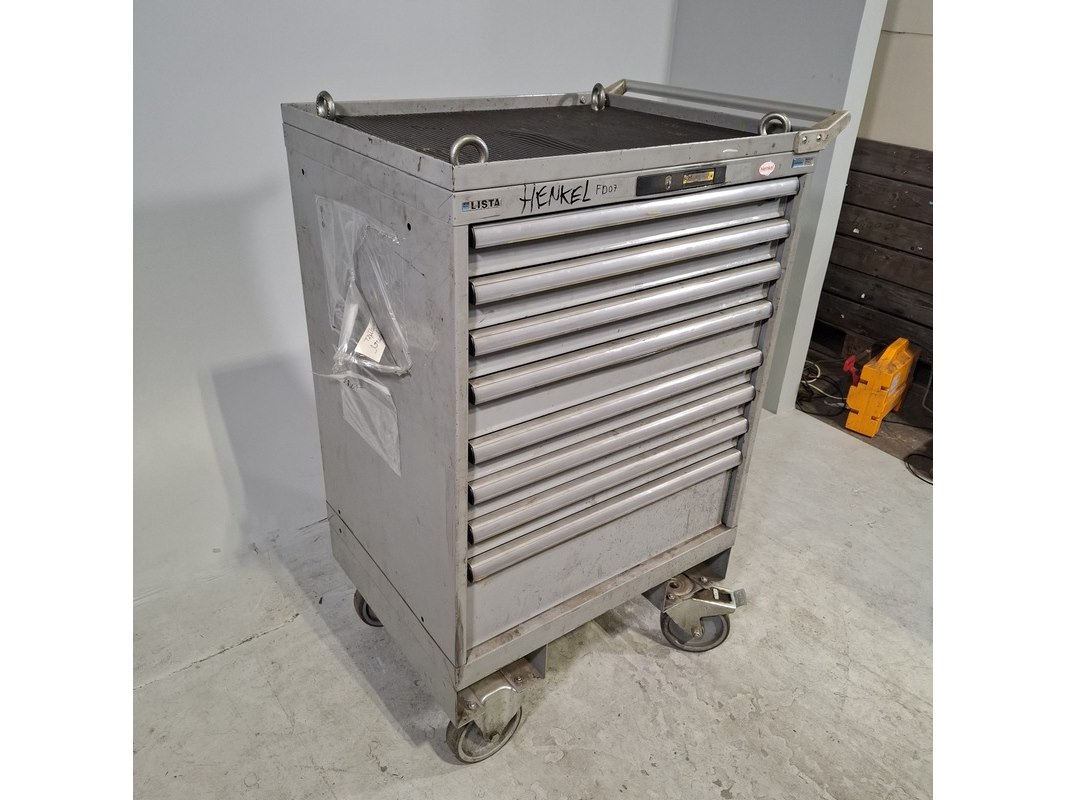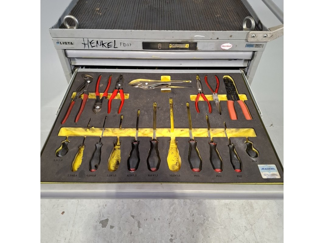 Merk: Lista Product: Gevulde gereedschapswagen Afmeting: HxBxD ca. 118x72x59 cm. Conditie: gebruikt Specificaties: Inhoud bestaande uit: Schroevendraaiers, steeksleutels, doppen en etc. De kar heeft diverse beschadigingen en gebreken. Technische staat en compleetheid onbekend.