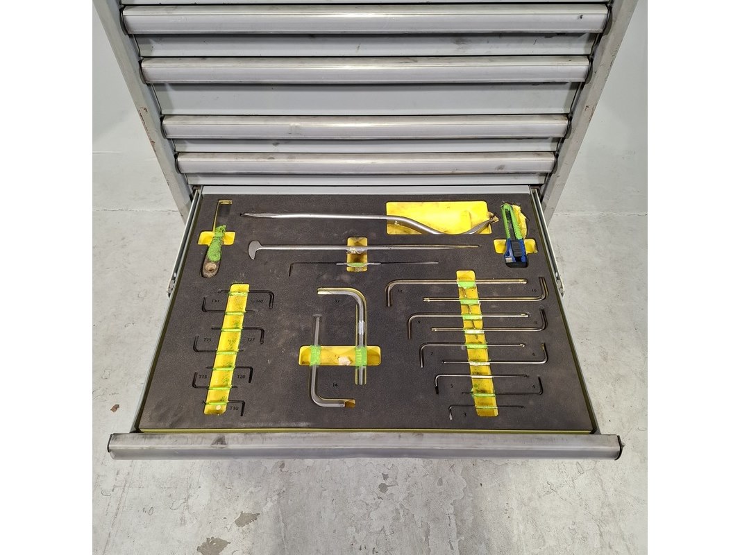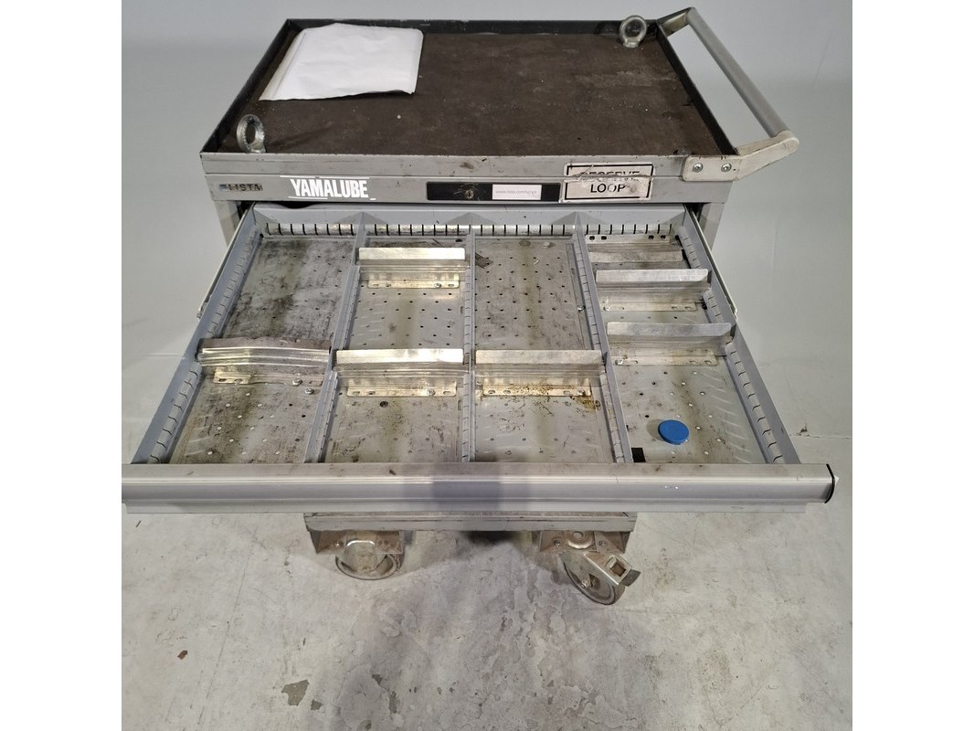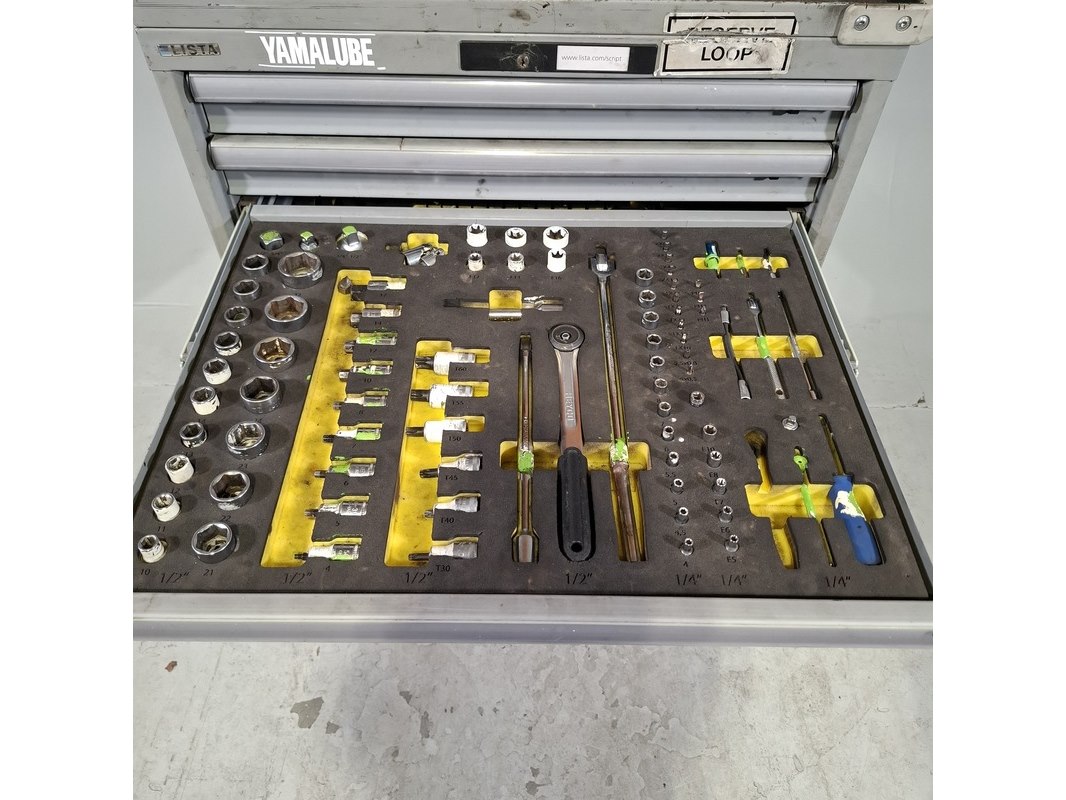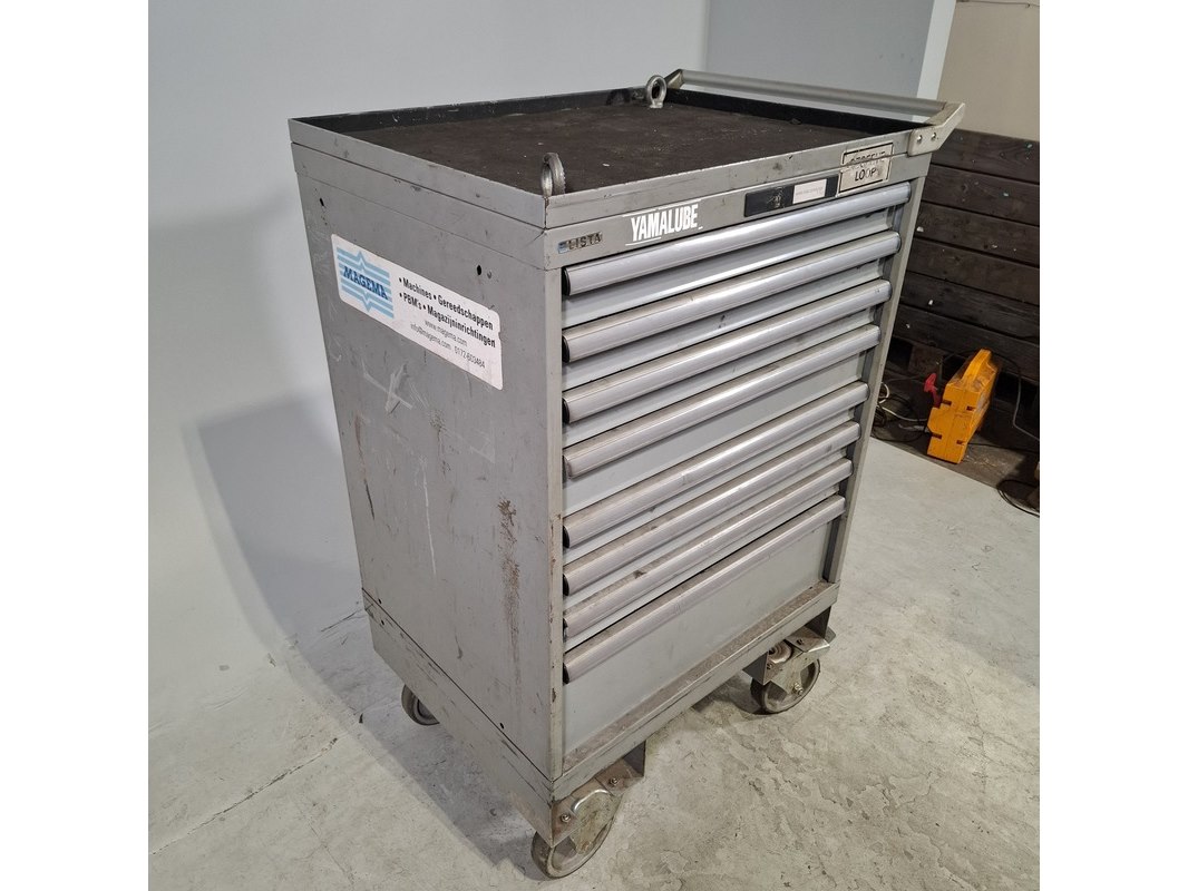 Merk: Lista Product: Gevulde gereedschapswagen Afmeting: HxBxD ca. 118x72x59 cm. Conditie: gebruikt Specificaties: Inhoud bestaande uit: Schroevendraaiers, steeksleutels, doppen en etc. De kar heeft diverse beschadigingen en gebreken. Technische staat en compleetheid onbekend.