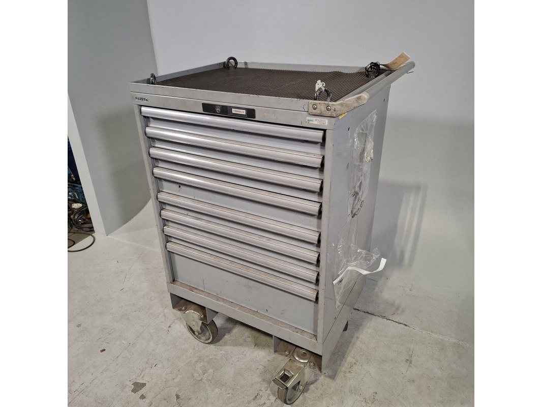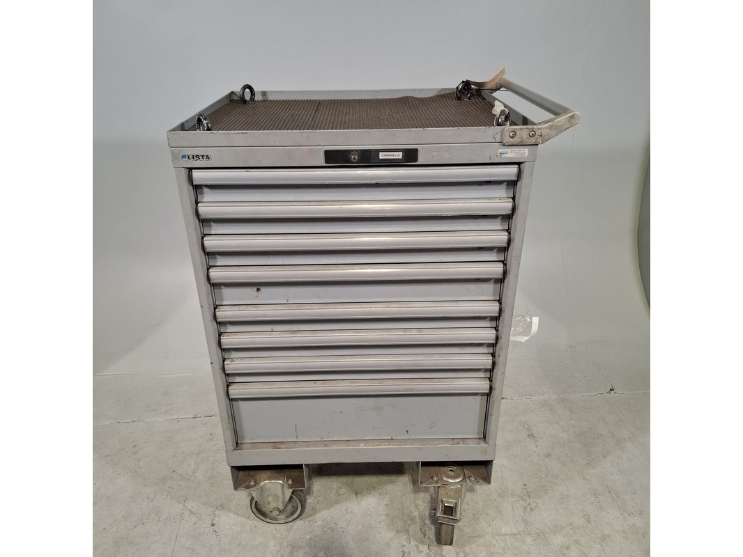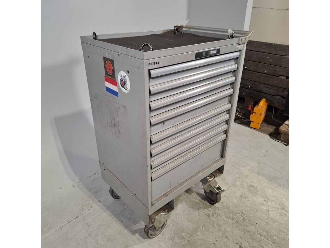 Merk: Lista Product: Gereedschapswagen Afmeting: HxBxD ca. 118x72x59 cm. Conditie: gebruikt Specificaties: Inhoud onbekend, kar staat op slot. Sleutel onbtreekt De kar heeft diverse beschadigingen en gebreken. Technische staat en compleetheid onbekend.