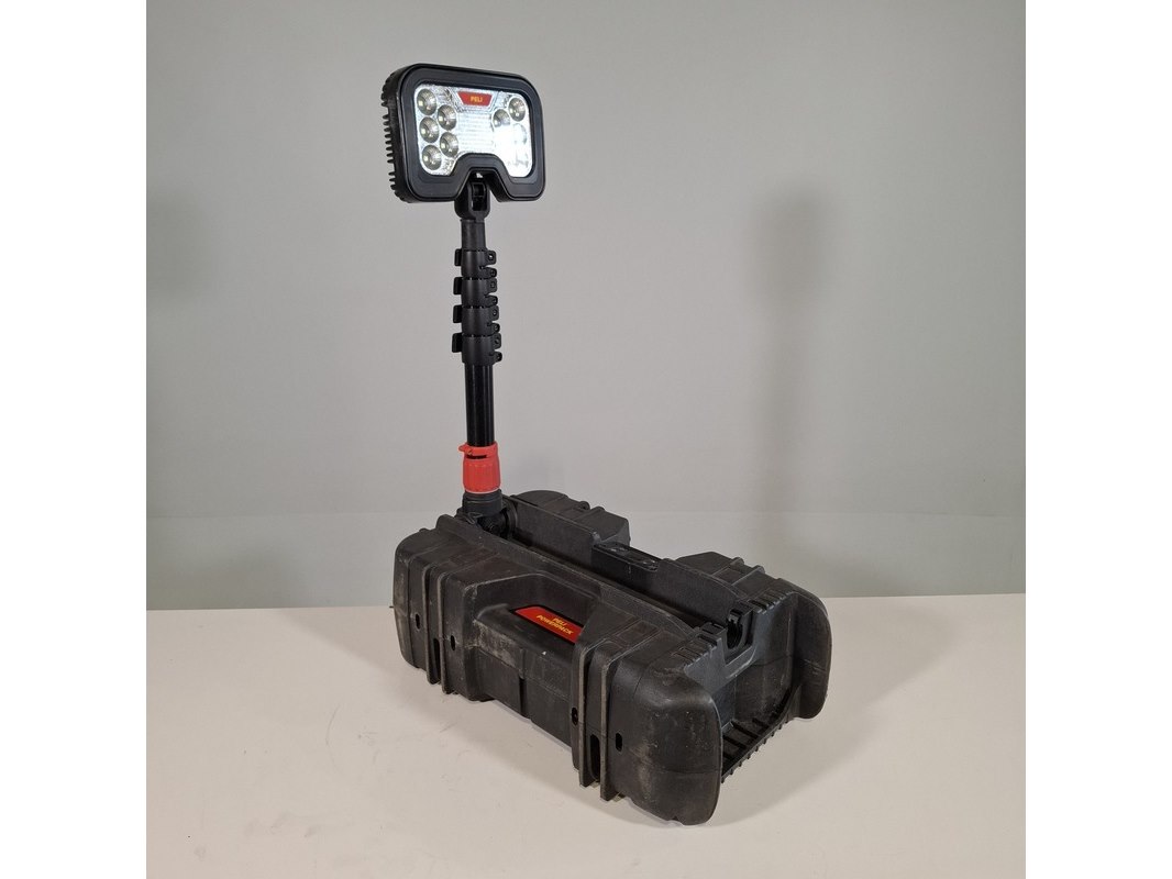 Merk: Peli Product: Bouwlamp Afmeting: Ingeklapt lxbxh ca. 51x30x17 cm Conditie: gebruikt Specificaties: Technische staat en compleetheid onbekend.