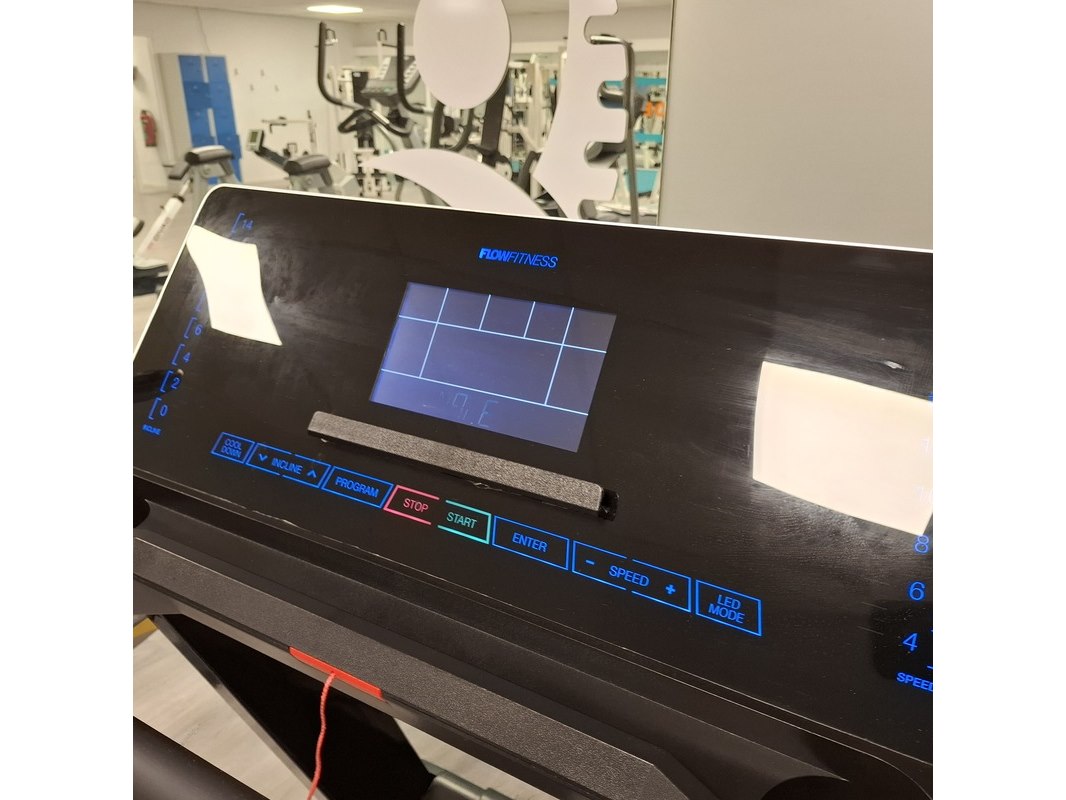 Merk: FlowFitness Product: Loopband Afmeting: lxbxh ca. 218x79x137cm Specificaties: 230V