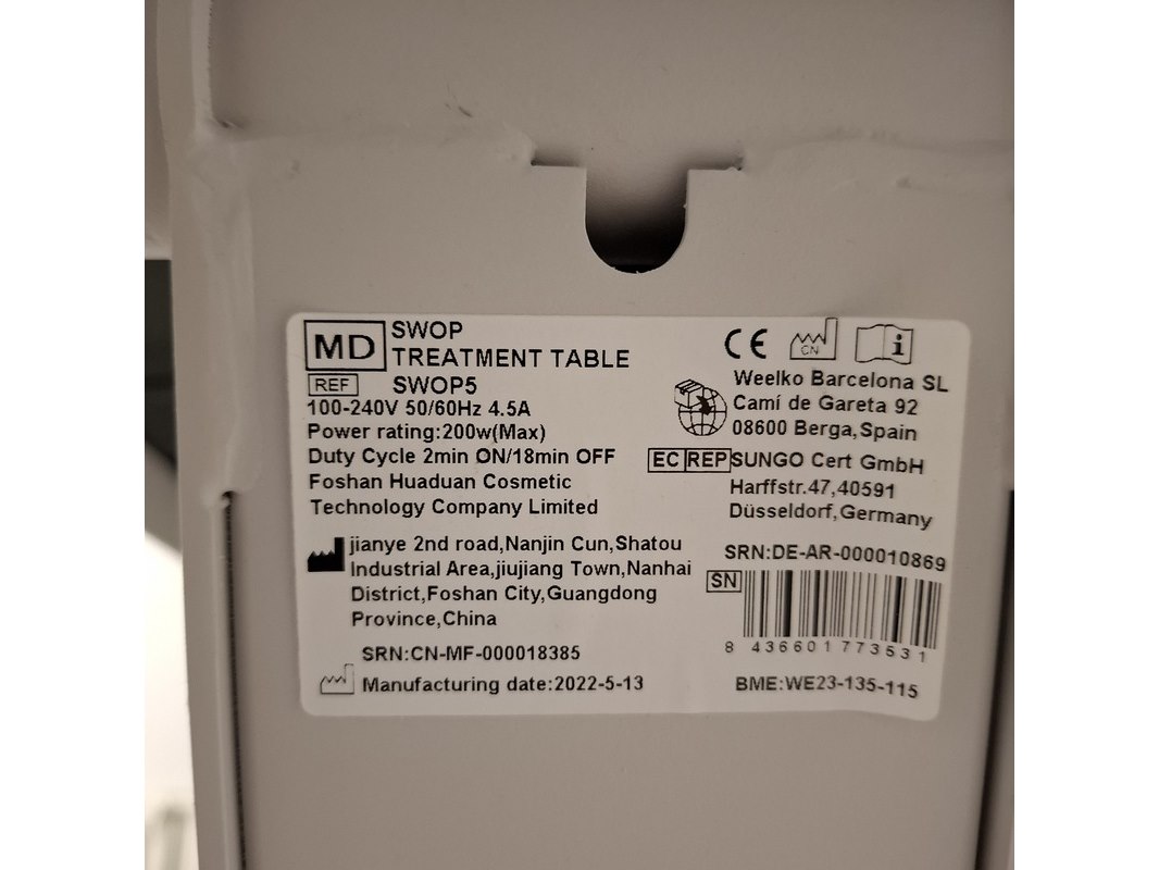Merk: Naggura Swop Product: Elektrisch verstelbaar behandeltafel Afmeting: lxb ca. 202x69cm, hoogte ca. 47-88cm BouwJaar: 2022 Specificaties: 230V