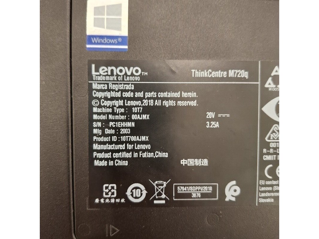 Merk: Lenovo Product: ThinkCentre met monitor Specificaties: monitor Iiyama, prolite XB2380HS Processor: Intel(R) Core(TM) i5-9400T CPU @1.80GHz (x86_64) Motherboard: LENOVO 312D Memory: 7.87 GB Disk Size: 238 GB