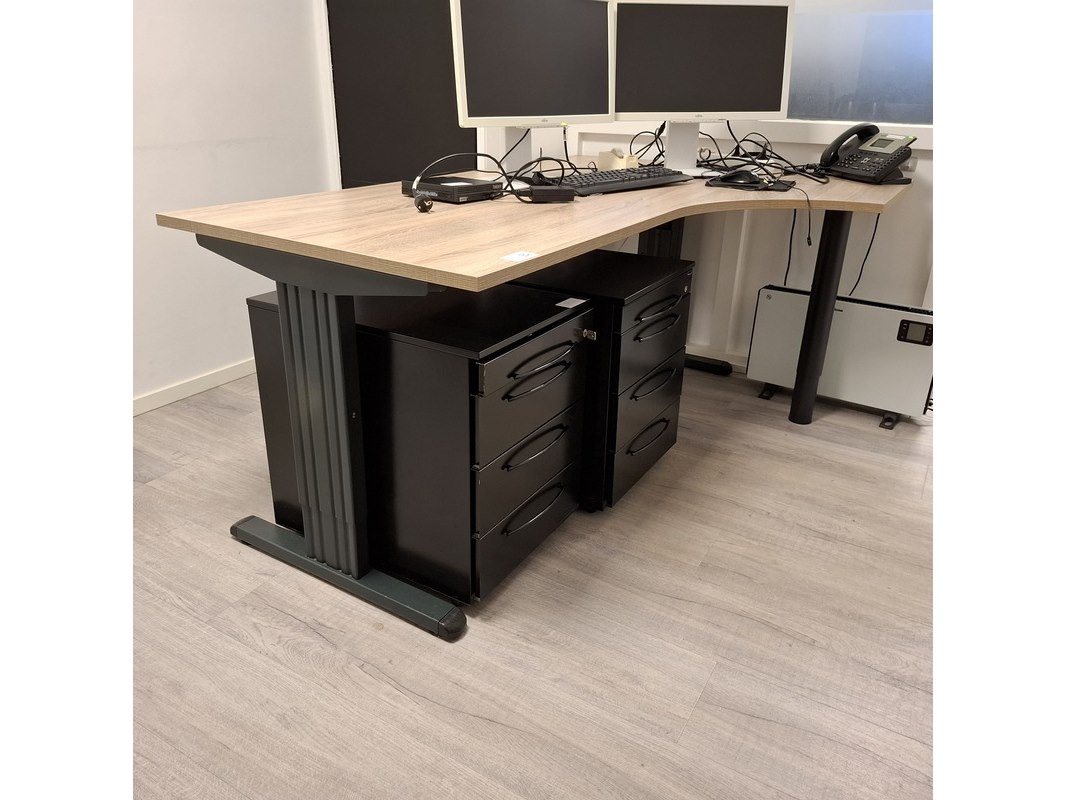 Product: Bureau met 2x ladeblok Afmeting: lxbxh ca. 180/120x80/60x75cm Specificaties: in hoogte verstelbaar