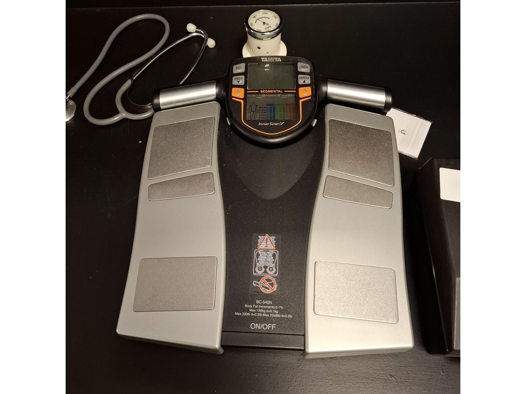 Product: Medisch meetinstrument Specificaties: 1x knijpkrachtmeter Saehan, SH5001 1x Micro MPM meter 1x lichaamsanalyse weegschaal Tanita Innerscan V