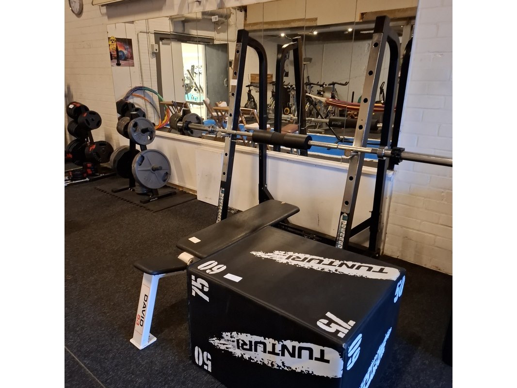 Squatrek met halterrek en fitnessbank o.a. powerhouse