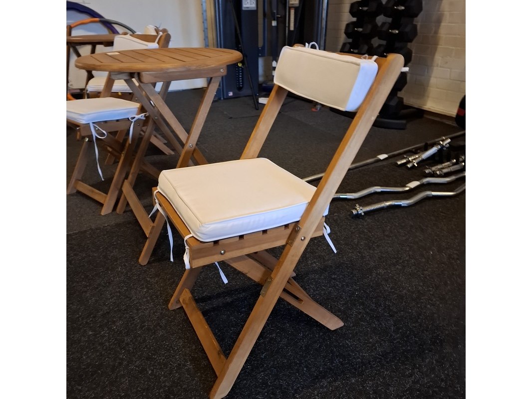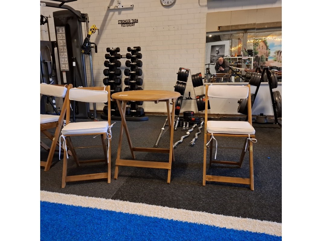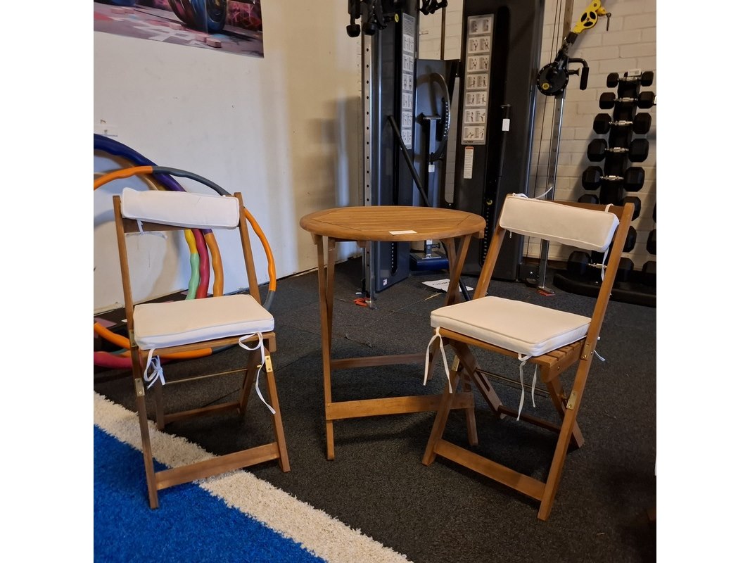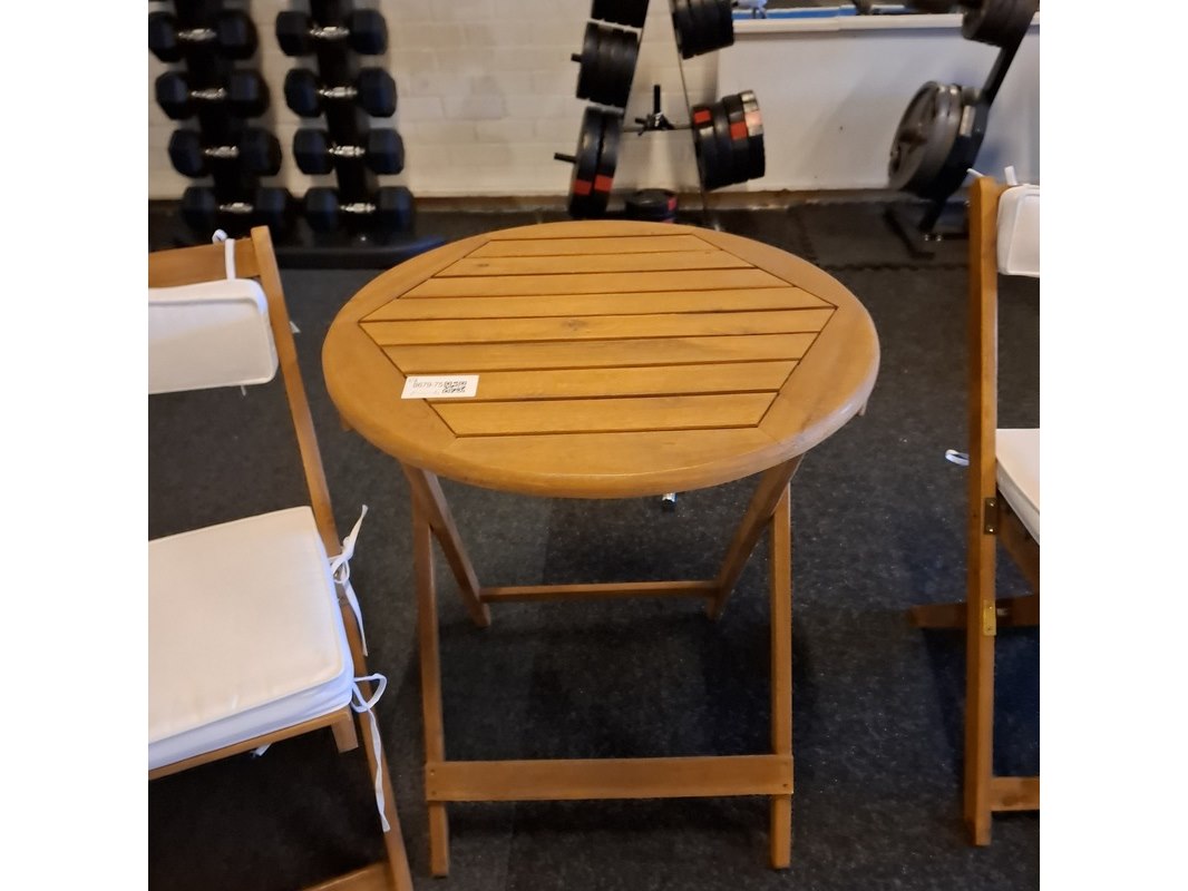 Product: Terrasstoel met 2x terrastafel Materiaal: hout Specificaties: tafel hxd ca. 72x60cm