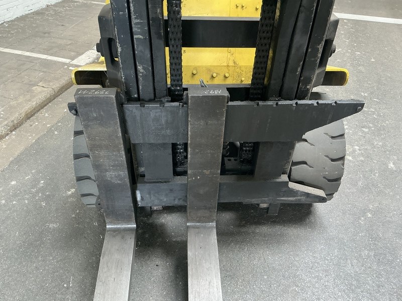 Merk: Hyster Product: Heftruck Kleur: geel Materiaal: staal Afmeting: L2850 x B1400 x H2400mm BouwJaar: 1999 Conditie: gebruikt Specificaties: 7 ton Capiciteit Gas aangedreven Vork lengte: 2400 mm Bedrijfsuren: ca 9710 h serie nummer: B024D06057W Gewicht: 9450