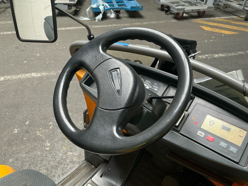 Merk: Jungheinrich Product: Elektro trekker Kleur: geel Materiaal: staal Afmeting: L2000 x B1050 x H1500mm BouwJaar: 2016 Conditie: gebruikt Specificaties: Bedrijfsuren: 12235 voltage 48 battery type K. Serial number: 91604884 Industriele trekker voor het verplaatsen van goederen in magazijnen, fabrieken, vliegvelden, en soortgelijke doeleindes Draaiuren: ca. 12356