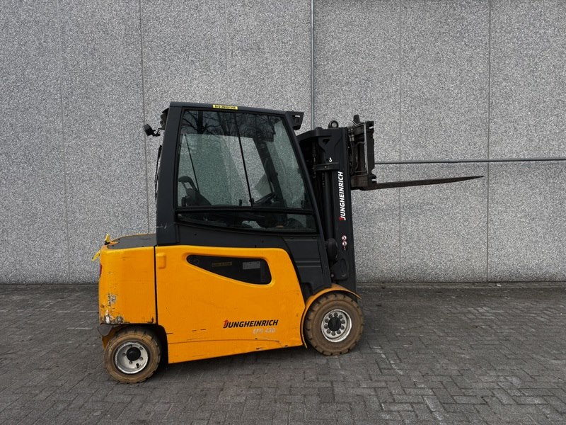 Merk: Jungheinrich Product: Heftruck Kleur: geel Materiaal: staal Afmeting: L3600 x B1300 x H2240mm BouwJaar: 2014 Conditie: gebruikt Specificaties: Model: Jungheinrich EFG S30 Type: Elektrische contragewichtvorkheftruck (4 wielen) Capaciteit: 3.000 kg (3 ton) Productie: circa 2014–2020 Belangrijkste specificaties Accu: 80 V elektrische accu Accucapaciteit: circa 700–775 Ah Gewicht: circa 5.300 kg inclusief accu Rijsnelheid: circa 17–20 km/u Draaicirkel: circa 2,15 m Breedte: circa 1300 mm Draaiuren: ca. 1310