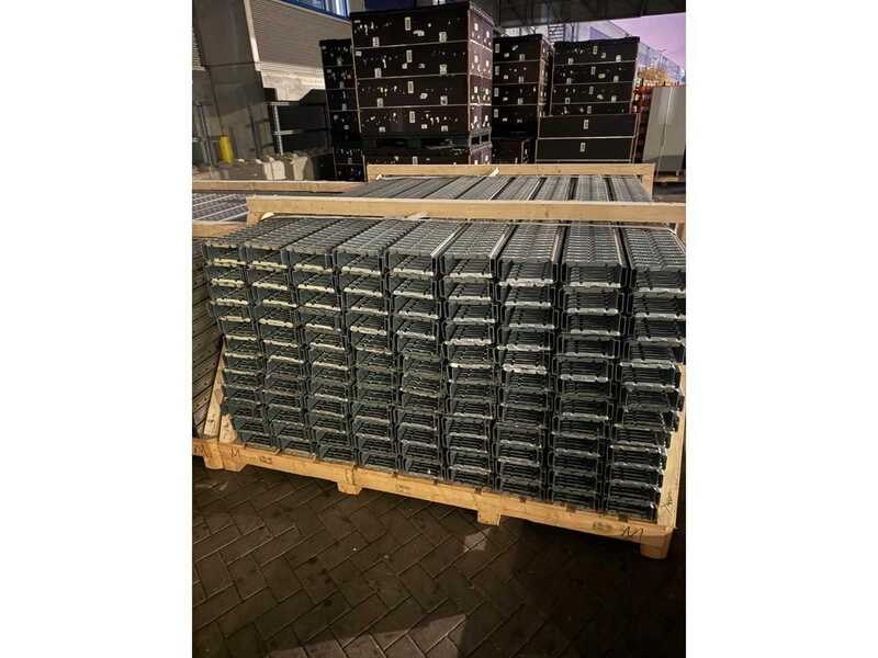 Merk: 4 ton Product: Stalen vloerdelen Materiaal: gegalvaniseert staal Afmeting: L3 x B2,5 X h1,2m Conditie: gebruikt Specificaties: 4 ton aan gestapelde gegalvaniseerde stalen vloerpanelen, gebruikt voor industriële vloeren. De panelen liggen netjes op een houten pallet, klaar voor installatie of transport. Deze elementen worden doorgaans gebruikt als dragende componenten in tussenverdiepingen, fabrieksvloeren of verhoogde platforms en bieden een sterke en duurzame ondersteuning voor zware industriële toepassingen. Op de achtergrond zijn diverse grote transportkisten te zien in een magazijn. Per paneel: Lengte - 3 m Hoogte - 75 mm Breedte - 0,20 m Gewicht - 18,4 kg