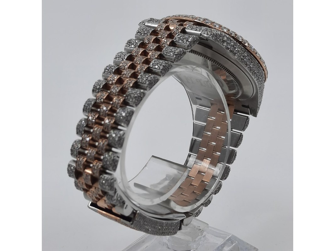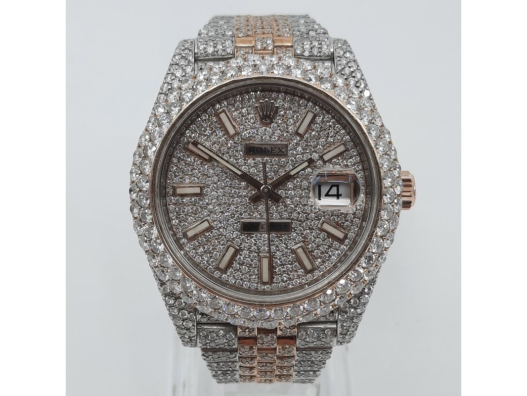 Merk: Rolex Product: Heren polshorloge Conditie: gebruikt Specificaties: Een stalen heren polshorloge, Rolex Datejust. Met diamant bezette wijzerplaat. Voorzien van ca. 30.0 crt diamant (niet origineel). Sluiting defect, onderdeel ontbreekt. Geen doos en geen certificaat.