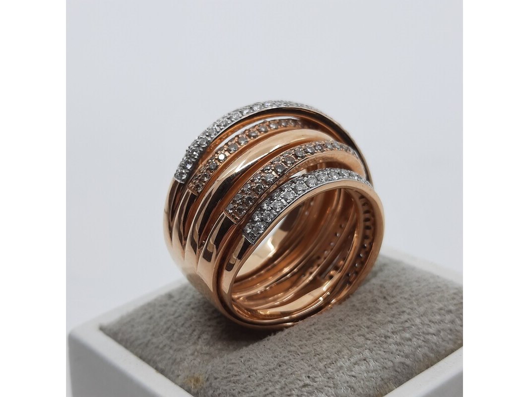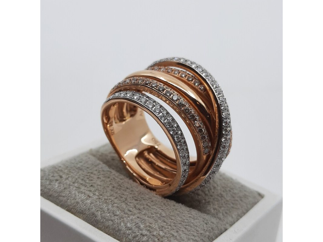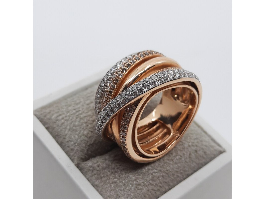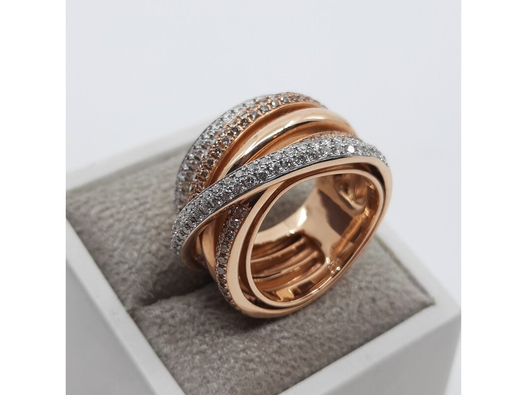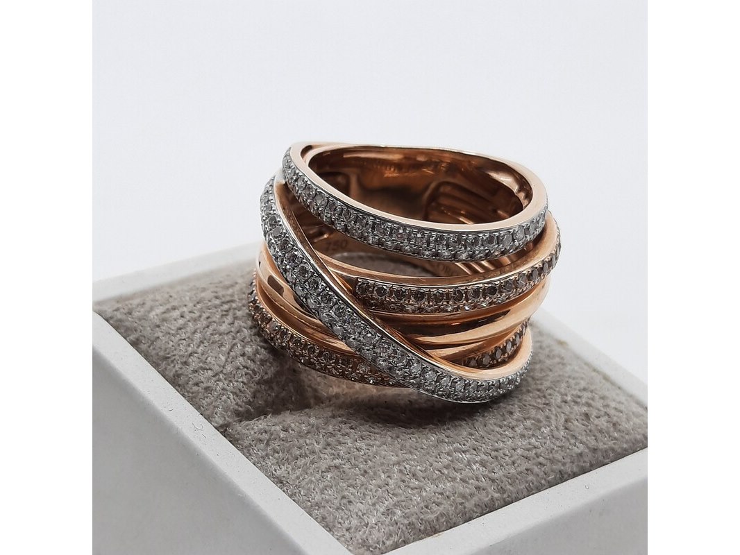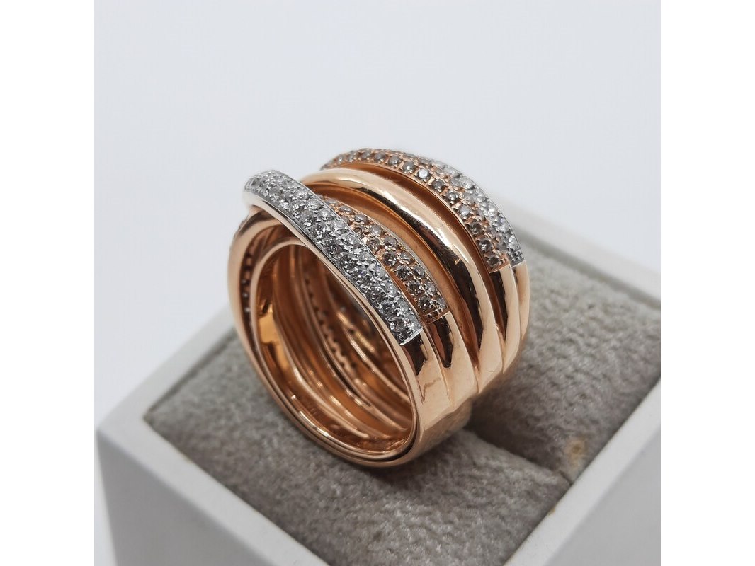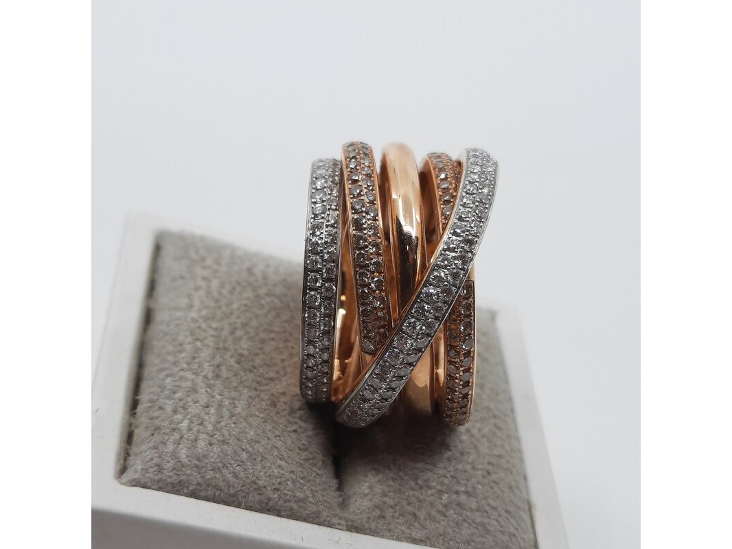 Merk: AL Coro Product: Roségouden ring, 18 karaats Afmeting: Ringmaat ca. 17 (54) Conditie: gebruikt Specificaties: Gewicht ca. 15.2 gram. Met briljant pavé gezet, 1.57 crt.