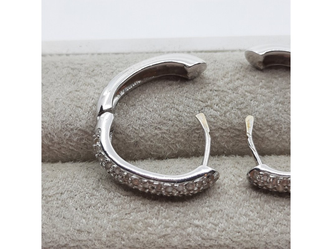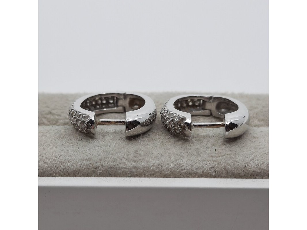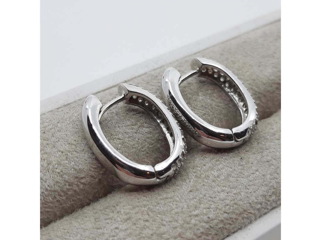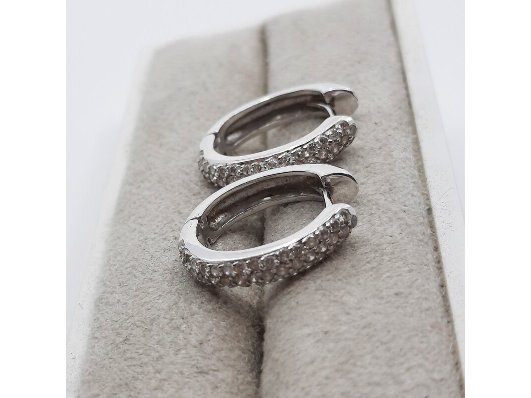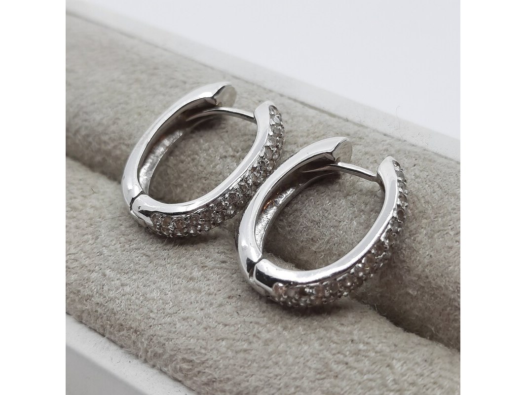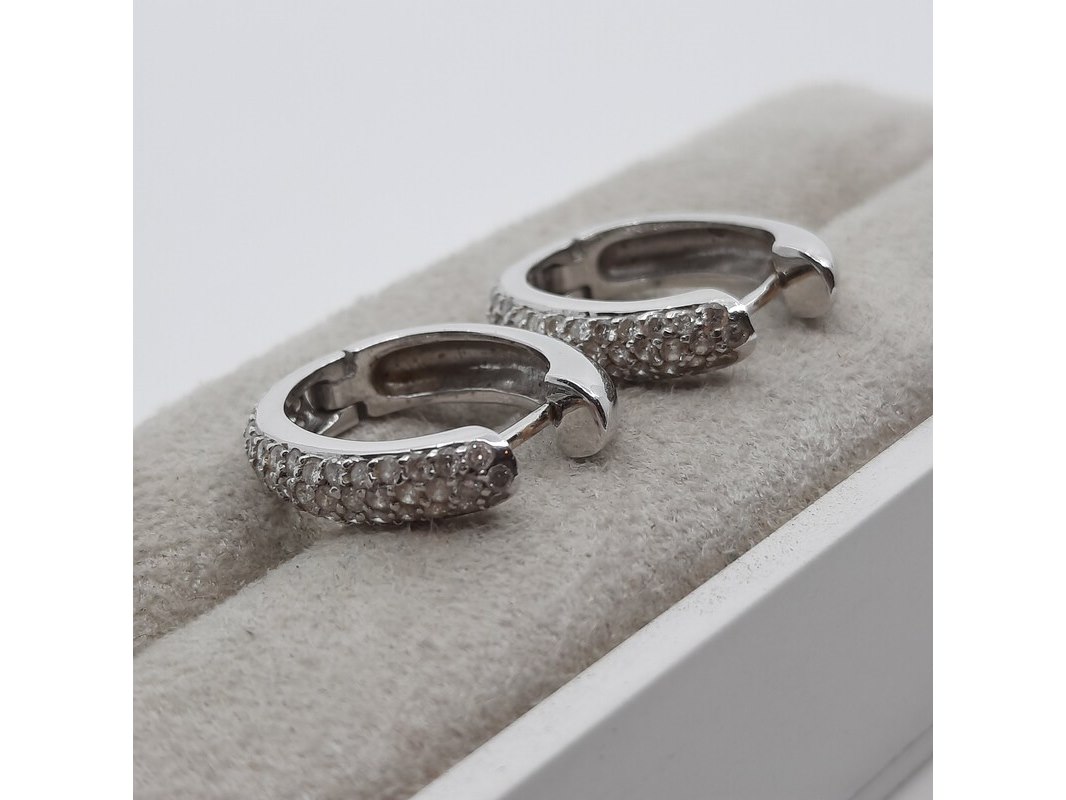 Product: Paar witgouden creolen met pavé gezet briljant, 18 karaats Conditie: gebruikt Specificaties: ca. 1.00 crt., Top Wesselton SI. Gewicht ca. 6.4 gram