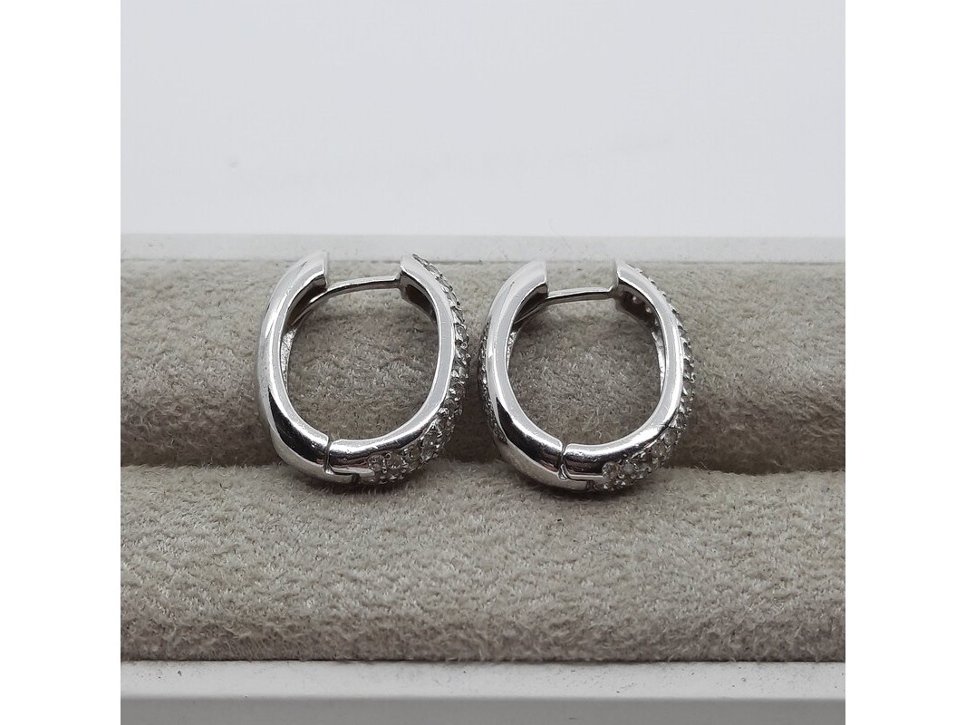 Paar witgouden creolen met pavé gezet briljant, 18 karaats