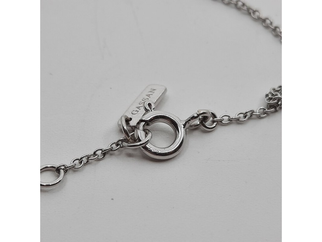 Merk: Gassan Product: Witgouden armband, 14 karaats Afmeting: Lengte ca. 19 cm. Conditie: gebruikt Specificaties: Met 15 briljanten rond gezet. 0.15 crt., Merk: Gassan. Gewicht ca. 1,31 gram