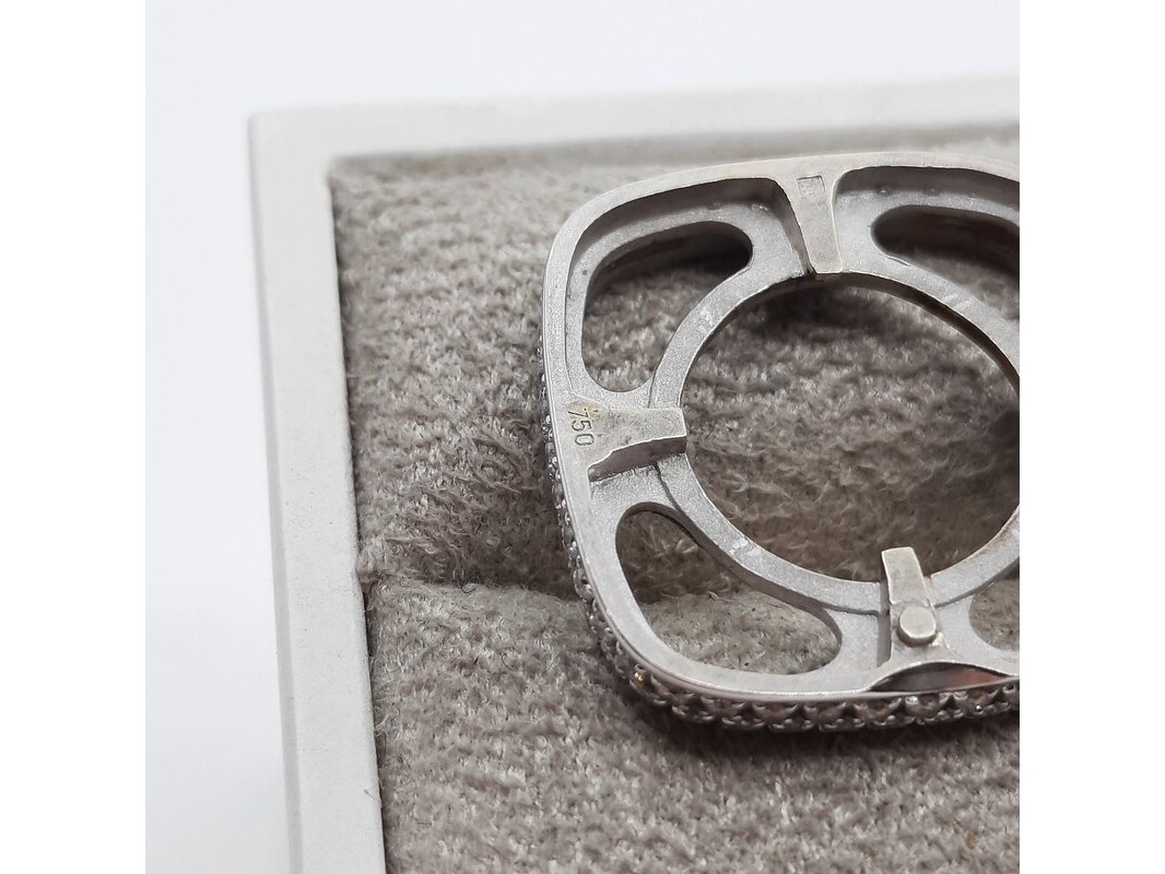 Product: Witgouden ring, 18 karaats Afmeting: Ringmaat ca. 18 (59) Conditie: gebruikt Specificaties: Met 18 losse stenen in diverse kleuren die verwisseld kunnen worden, zowel glas als edelstenen. Daarnaast zit er een extra rand bij met pavé diamant, ca. 1.00 crt., Top Wesselton VSI, maat 20.