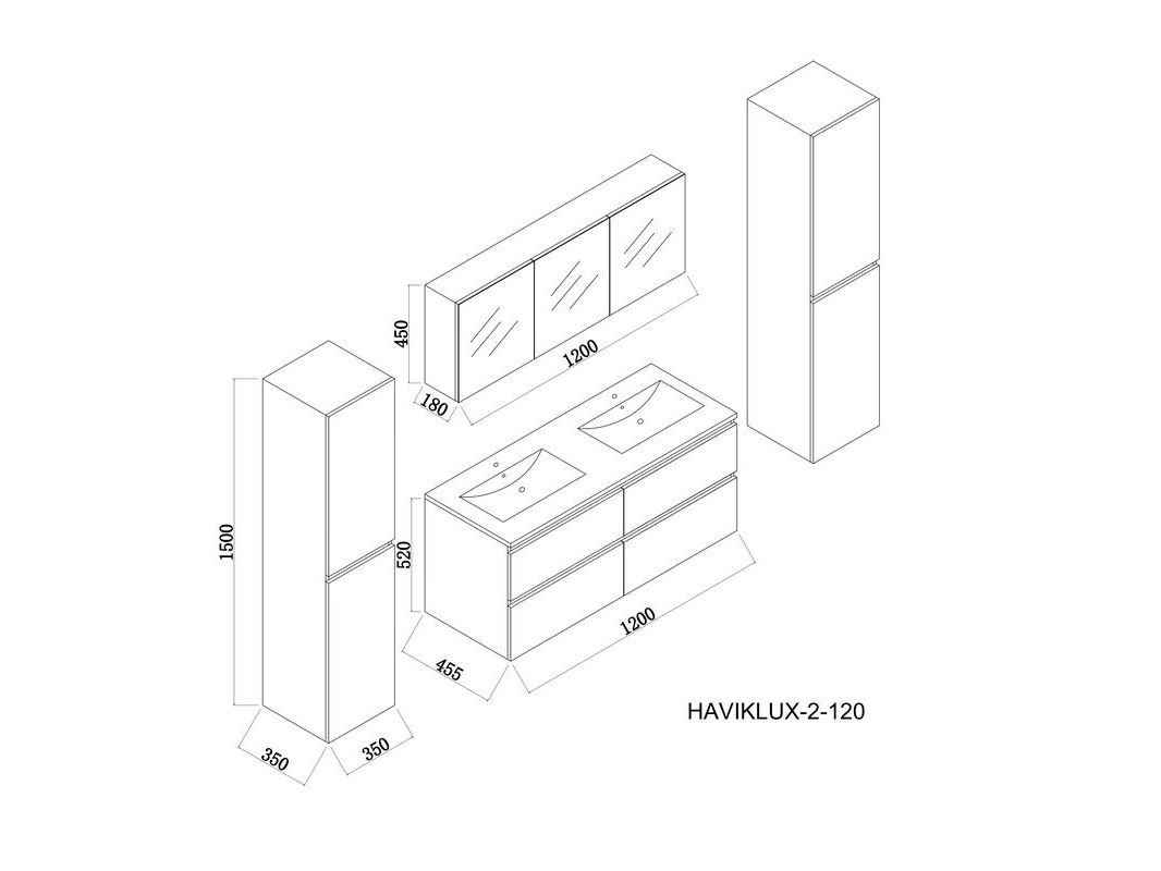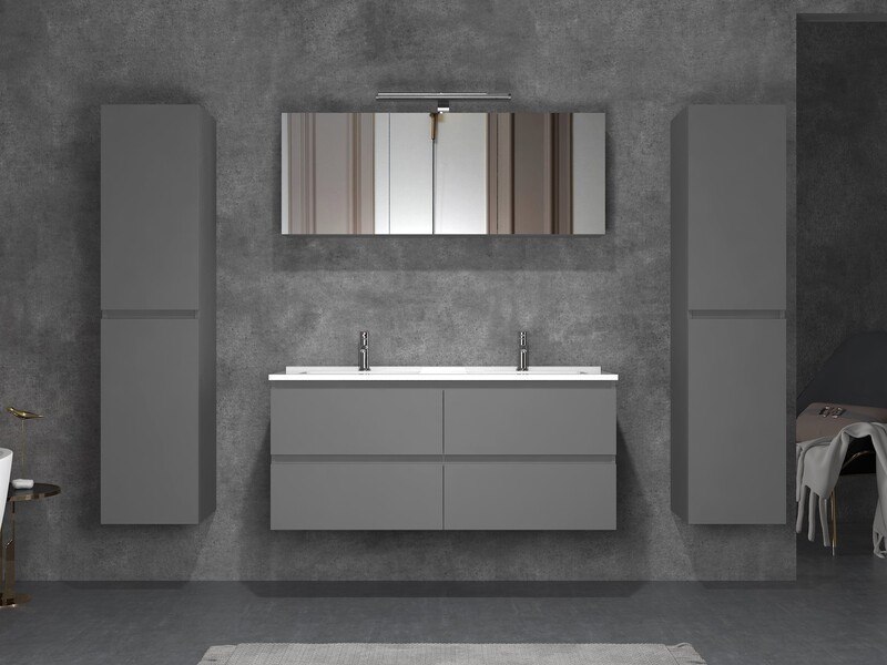 Merk: Vonato Product: Badkamermeubel Kleur: Hoogglans antraciet Materiaal: 18 mm MFC Conditie: nieuw Specificaties: Aantal: 1 Merk: Vonato Productnaam: Badkamermeubel Type: HAVIKLUXWM-2-120-ANT Model: 2-persoons badkamermeubel 120 cm - hoogglans antraciet met witte wasbak Kranen: Inclusief Afmeting: 2-persoons set: 1 * Wastafelmeubel - 1200x455x520mm 1 * Dubbele wasbak – 1200x460x160mm (rand 2 cm) 2 * Zijkasten - 1500x350x350mm 1 * Spiegelkast - 1200x450x180mm Kleur: Hoogglans antraciet Materiaal: 18 mm MFC Voorzien van: Kranen inclusief pop-up afvoer – 4 lades - Softclose systeem op deurtjes en lades - Giethars wasbakken – LED verlichting boven de spiegel – Spiegelkast met 3 deurtjes en 2 planken - Voorgemonteerde zijkasten en wastafelmeubel. Conditie: Nieuw Ter waarde van: € 3.495,00