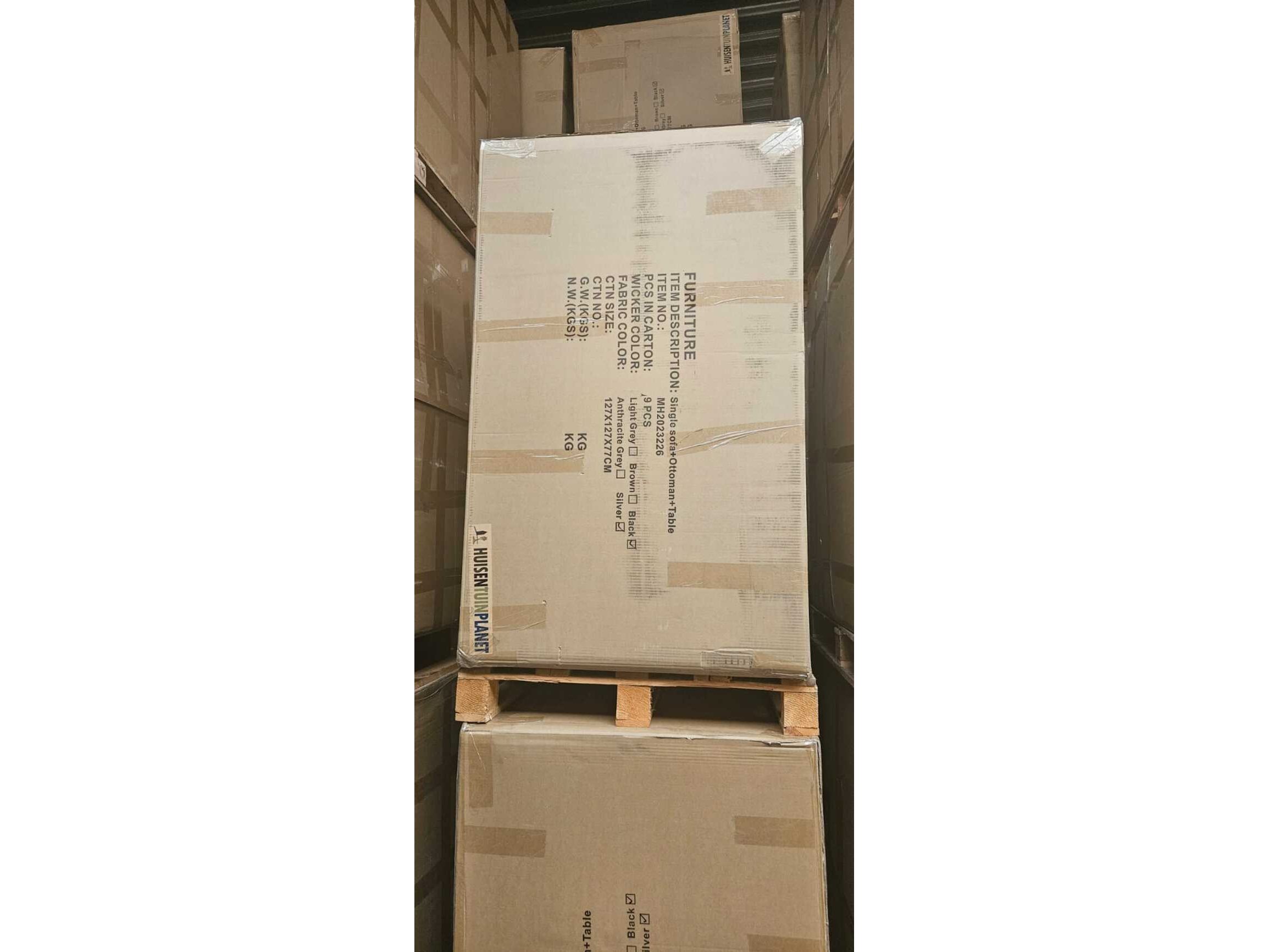 Merk: VONATO Product: Diningset Kleur: Licht grijs Materiaal: Gepoedercoat aluminium frame Conditie: nieuw Specificaties: Aantal: 1 Merk: Vonato Productnaam: Diningset Type: NEVADA-26-LG Kleur: Light grey wicker, zwarte kussens Model: 9-delige diningset Afmetingen: 9-delige set: 1* table 125*125*75cm 4* chair 60*60*68/93cm 4* ottoman 45*45*36cm Frame: Gepoedercoat aluminium frame - garandeert een langere levensduur Voorzien van: weerbestendig vlechtwerk Conditie: Nieuw