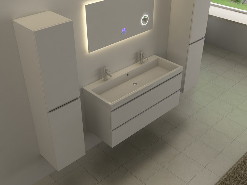 Merk: Vonato Product: Spiegel Kleur: LED verlichting in 3 kleuren; geel, blauw en wit Materiaal: 0 Conditie: nieuw Specificaties: Aantal: 1 Merk: Vonato Productnaam: Badkamerspiegel Type: RALM-100 Model: Rechthoekige spiegel met LED verlichting Afmetingen: 1000x500x5 mm Kleur: LED verlichting in 3 kleuren; geel, blauw en wit Voorzien van: Touch bediening via digitaal display – LED verlichting in 3 kleuren, dimbaar – Bluetooth & speakers – Digitale klok – Digitale temperatuurmeter – 220 volt aansluiting – Anti-fog technologie door verwarming in de spiegel – Vergrootglas (vergroot 3x) in de spiegel Ø10 cm - Kopervrije spiegel - 1,5mm explosieveilige laag aan de achterkant. Conditie: Nieuw Ter waarde van: € 395,-