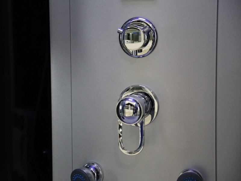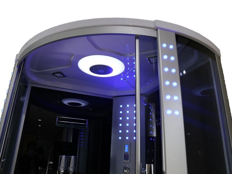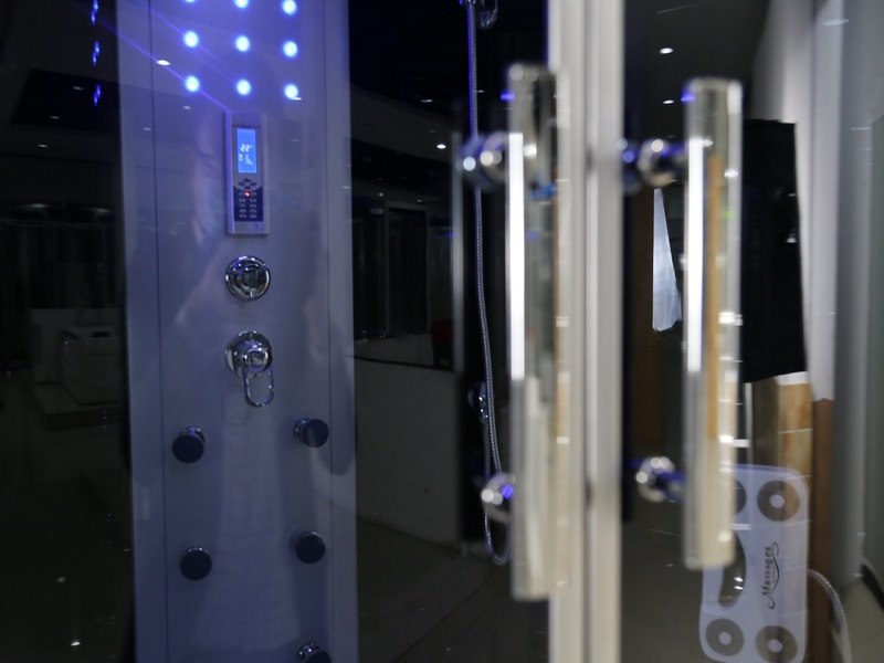 Merk: Vonato Product: Stoomcabine Kleur: Zwarte cabine, wit bad Materiaal: Veiligheidsglas Conditie: nieuw Specificaties: Aantal: 1 Merk: Vonato Productnaam: Stoomcabine met massagebad Type: 2586W Model: Massagebad - Halfrond Afmeting: 1350x1350x2200mm Waterjets: 6 Waterjets zorgen voor een aangename rugmassage. Voorzien van: Schuifdeuren met waterdichte afsluiting - Hand- en regendouche - Digitaal bedieningspaneel - Sfeerverlichting - FM-radio met speaker en CD-aansluiting - Port om de telefoon op aan te sluiten - Antislip bodem - Ventilator - Cabine staat op verstelpoten die eenvoudig te stellen zijn in hoogte. Conditie: Nieuw Ter waarde van: € 4.695,00