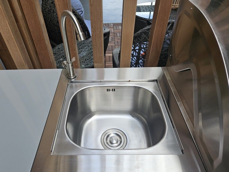 Merk: Vonato Product: Gasbarbecue Kleur: Zilverkleurig, RVS (mat) Materiaal: RVS BBQ, Gietijzeren rooster Conditie: nieuw Specificaties: Aantal: 1 Merk: Vonato Productnaam: Gasbarbecue buitenkeuken Type: JFK-005 Model: RVS Gasbarbecue – Complete buitenkeuken Kleur: Zilverkleurig Materiaal: RVS BBQ, Gietijzeren rooster Afmetingen: B:308 x H118 x D:55 cm. 130 kg. Grilloppervlak: 90x48 cm Voorzien van: 6 Hoofdbranders en 1 extra gaspit – Draaispit – Koelkast – Wasbak met kraan – Verlichting - Gietijzeren rooster - Gietijzeren kookplaat – Warmhoudrek - Elektrische ontsteking - Deksel voorzien van thermometer - Wieltjes - Opbergruimte in 4 kastjes. Conditie: Nieuw