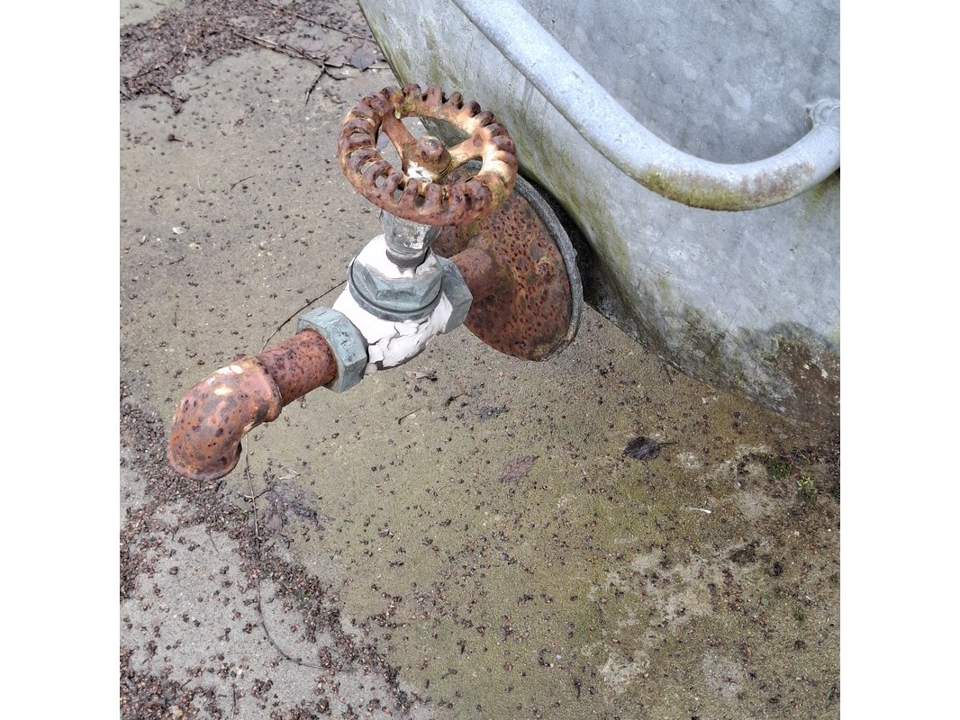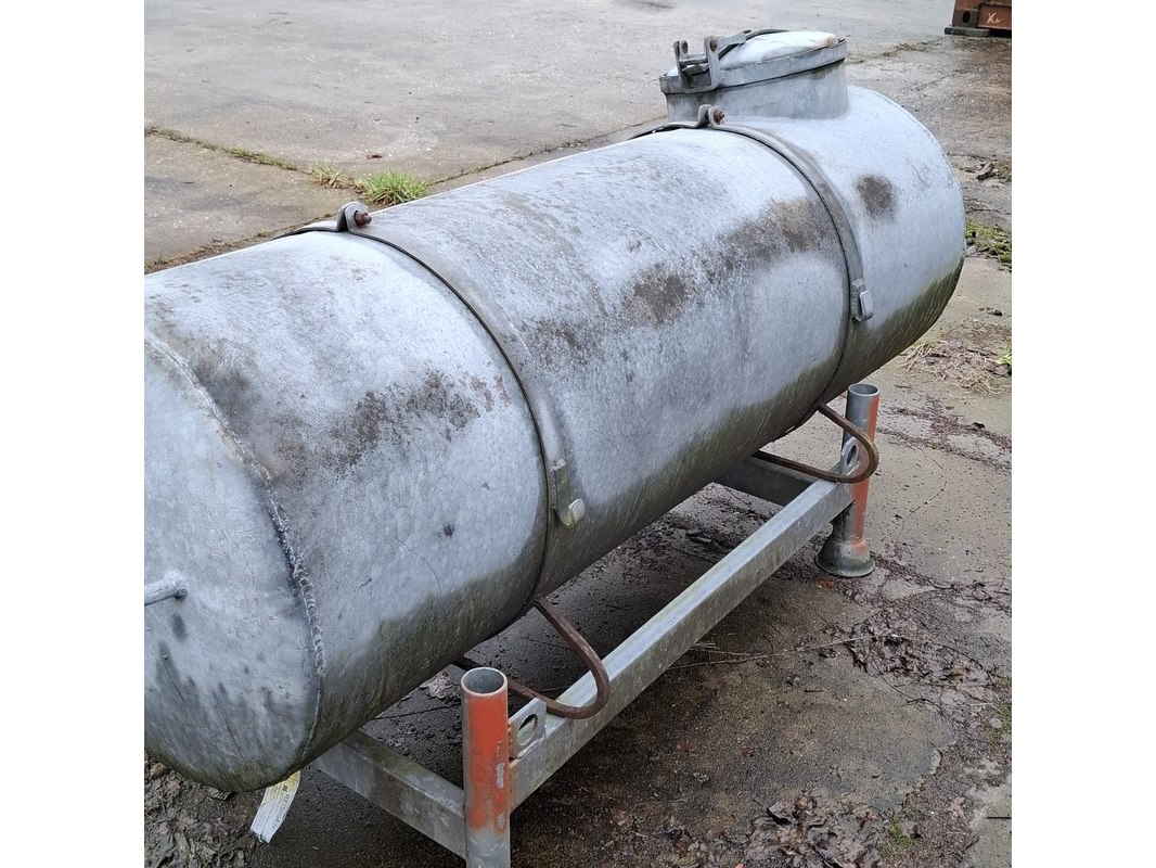 Product: Watertank met transportbok Materiaal: metaal Afmeting: tank bxd ca. 184x66cm