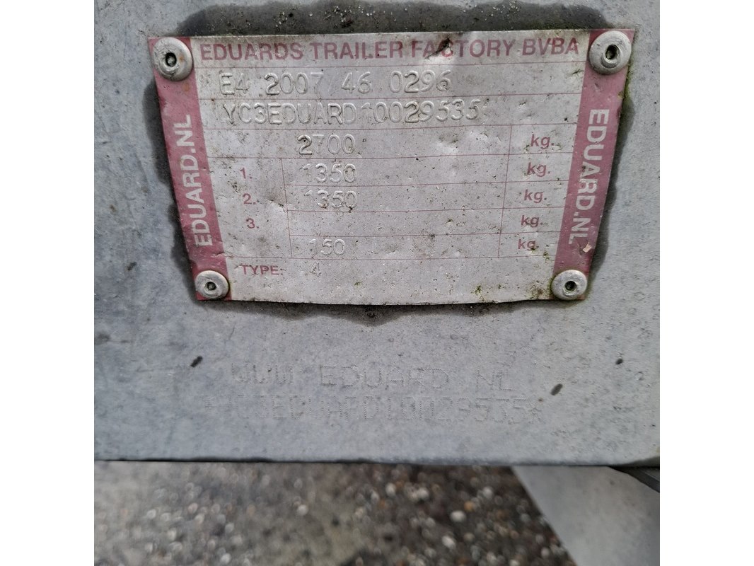 Merk: Eduard Product: Tandemas aanhanger Afmeting: bakmaat lxb ca. 330x180cm BouwJaar: 2011 Specificaties: kenteken 59-WH-DZ