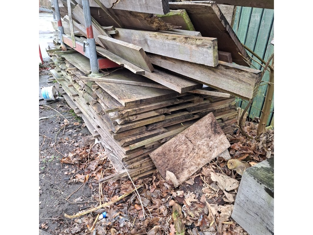 Partij diverse houten balken en planken