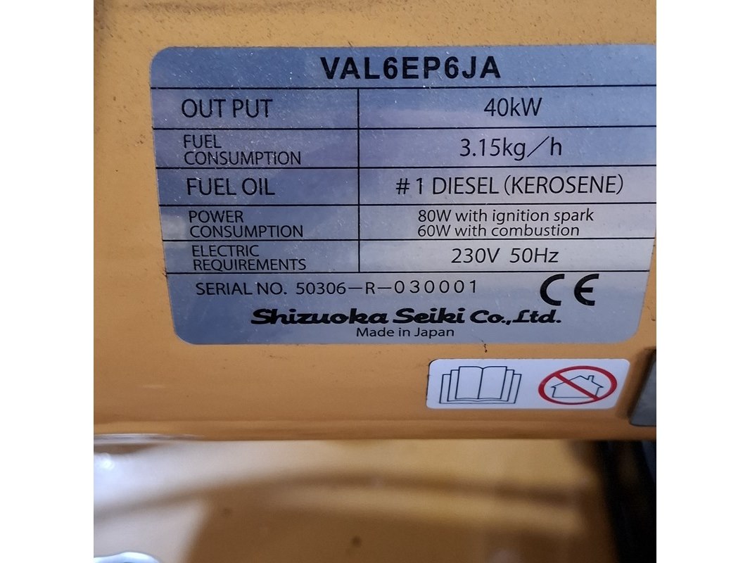 Merk: Shizuoka Seiki Product: Infrarood diesel heater Specificaties: 40kW, 230V
