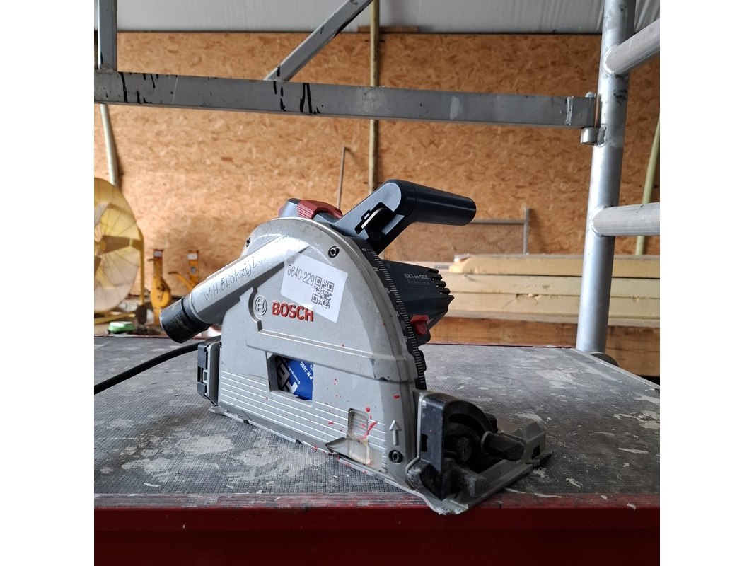Merk: Bosch Product: Invalzaag met geleiderail BouwJaar: 2012 Specificaties: 230V, 1400W, max 165mm